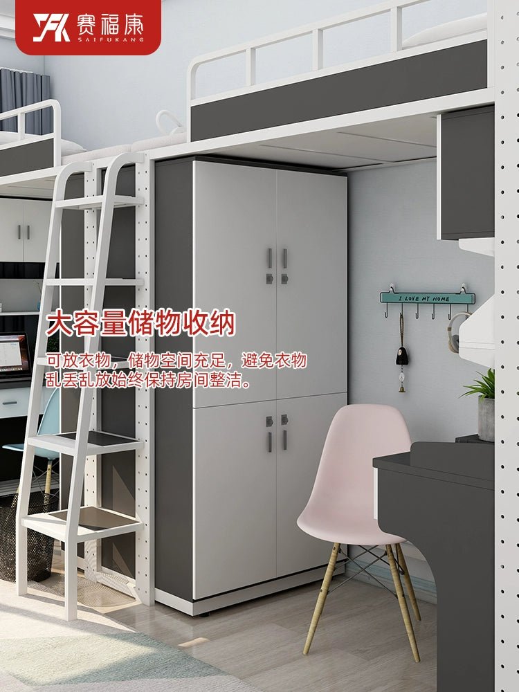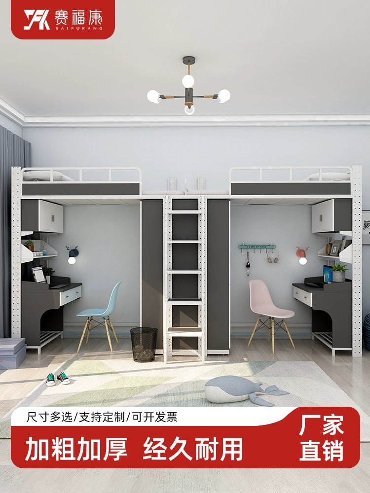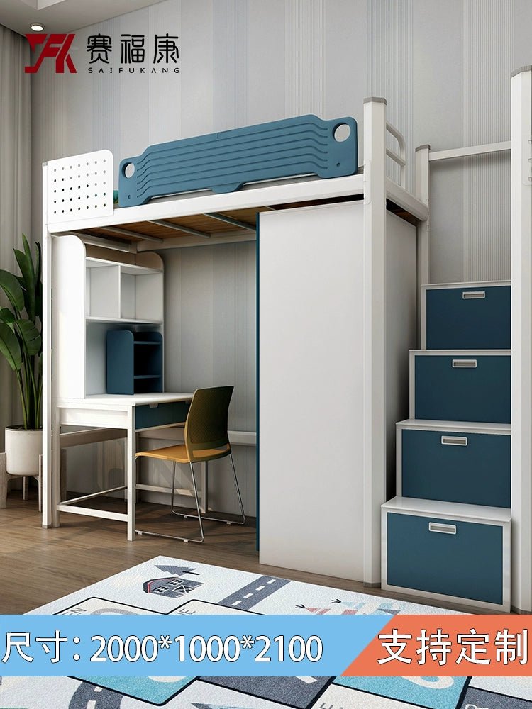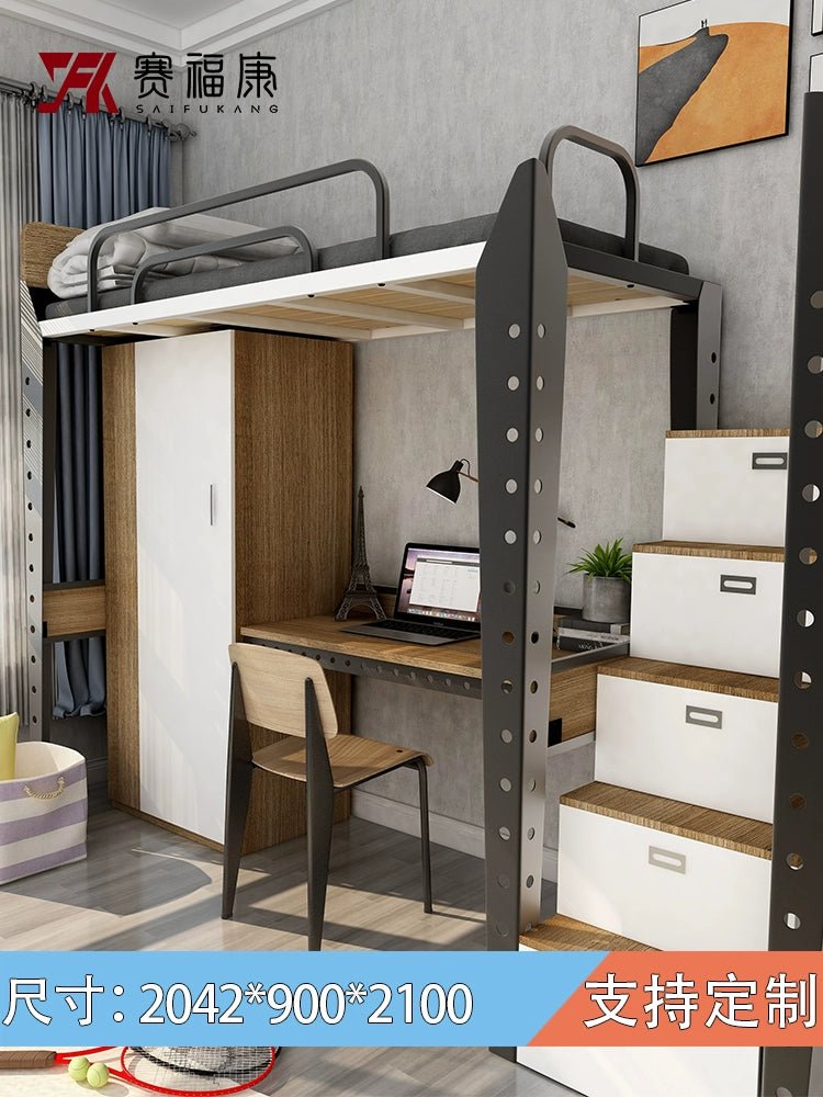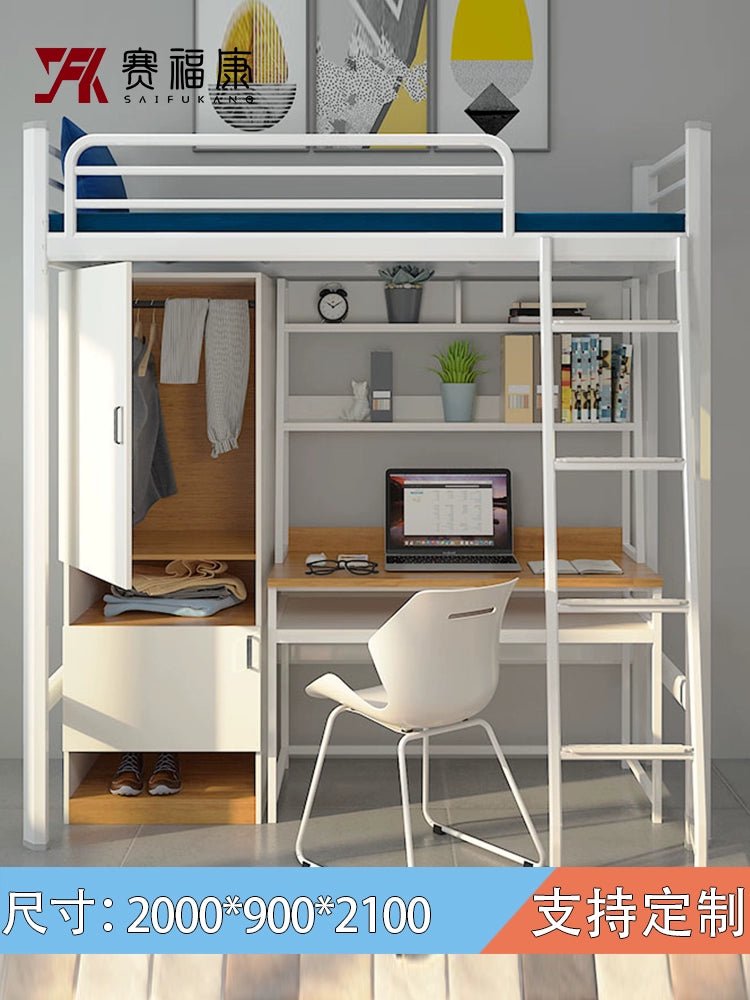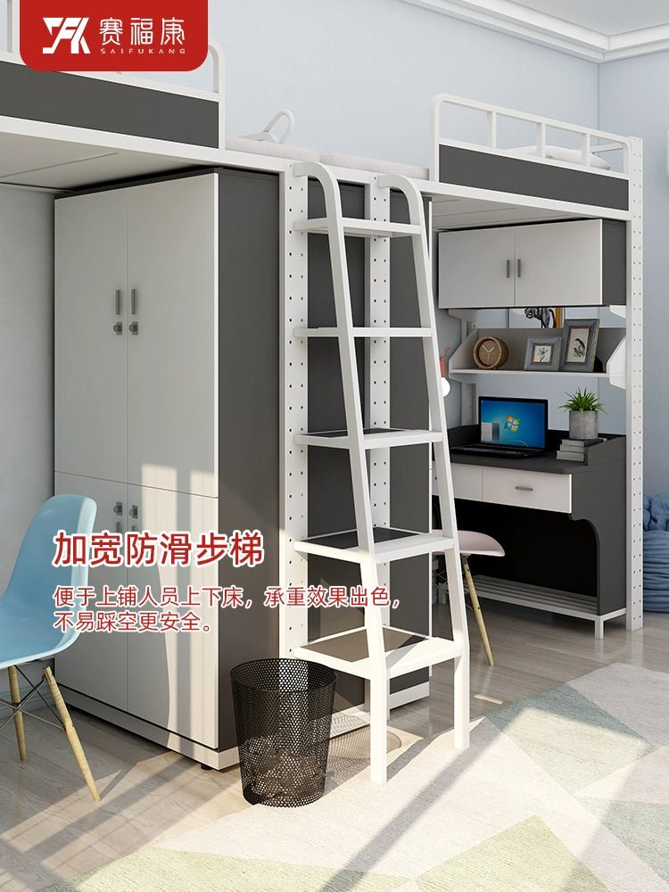 Cama alta multifuncional y escritorio para residencias universitarias