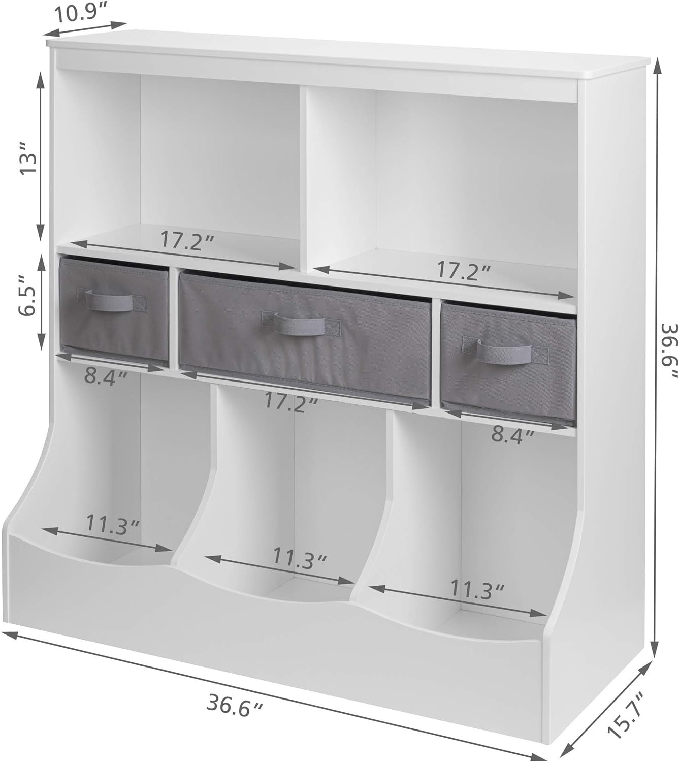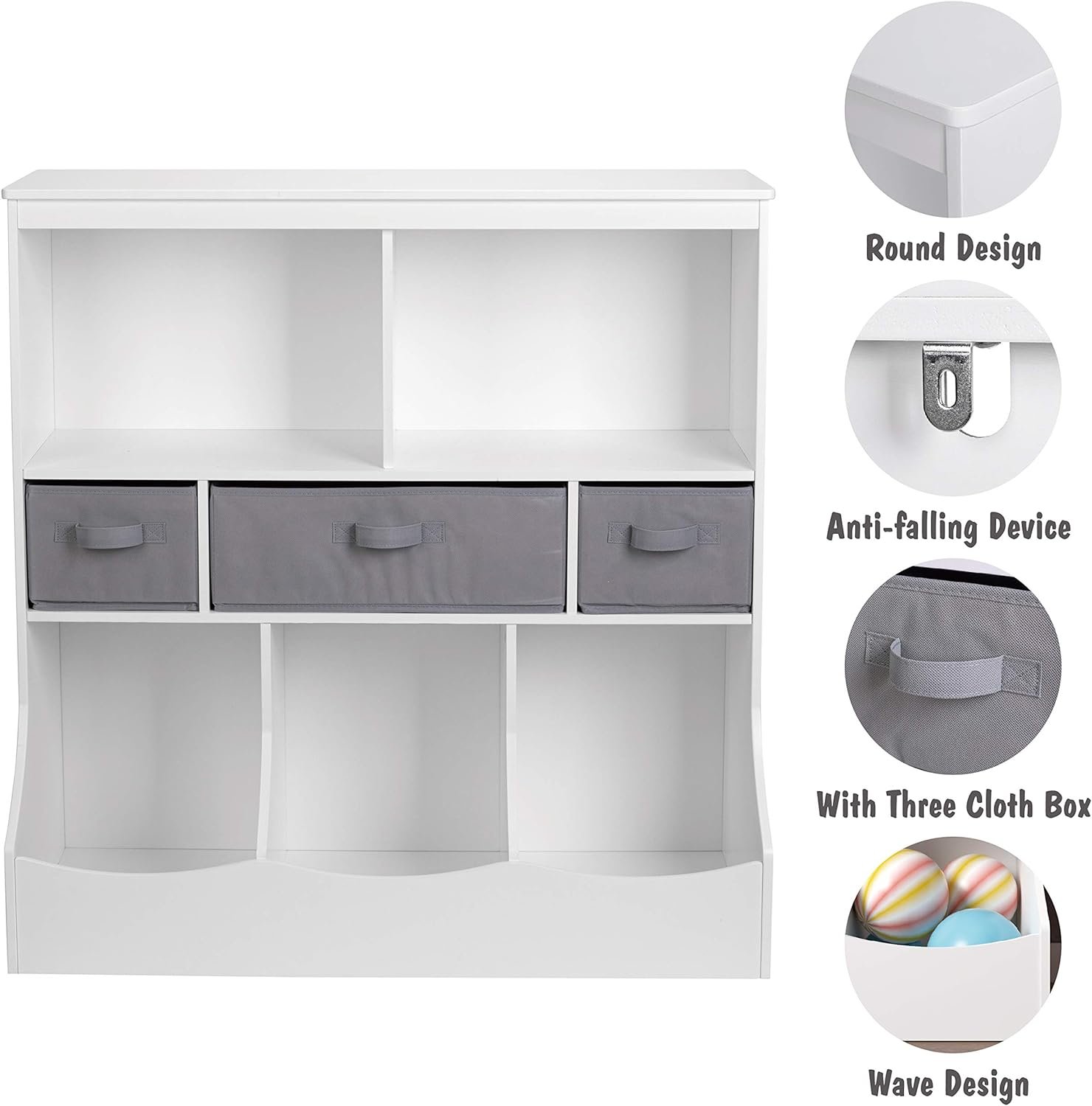🧸 Sturdy & Stylish Design: Crafted from engineered wood, this Kids Storage Organizer ensures durability while featuring a child-safe and easy-to-clean white painted finish. Its sleek design adds a clean touch to any room.