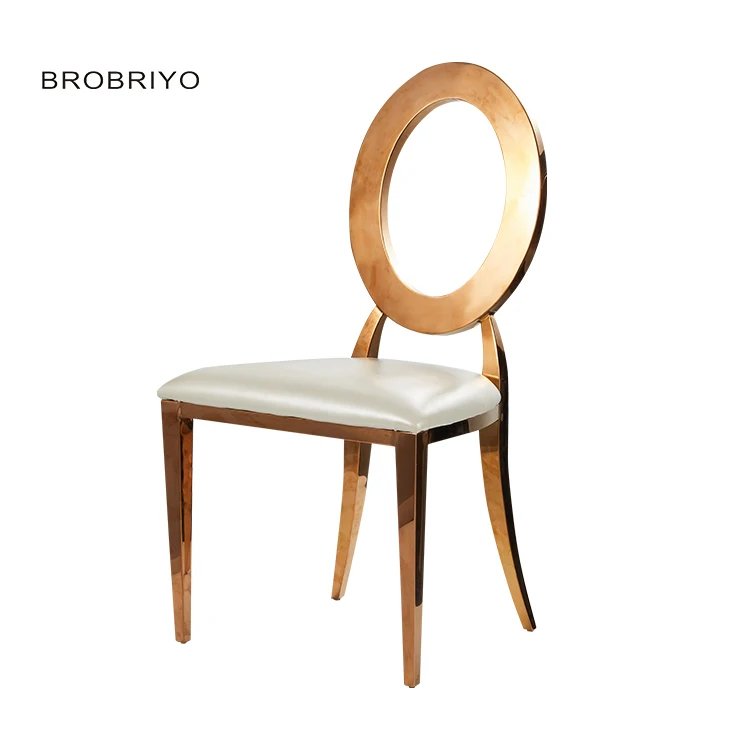Silla de banquete de hotel restaurante comedor silla de respaldo redondo boda europea silla de acero inoxidable silla de comedor de casa sillas