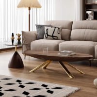 Walnut Oval Coffee Table – Modern Light Luxury Design