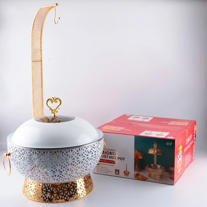 22 avis pour 8L New Design Restaurant Supplies Hanging Food Warmer Buffet Dish Decorative Chafer Dish Fancy Black White Chafing Dish Set