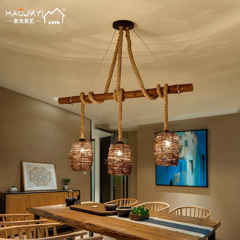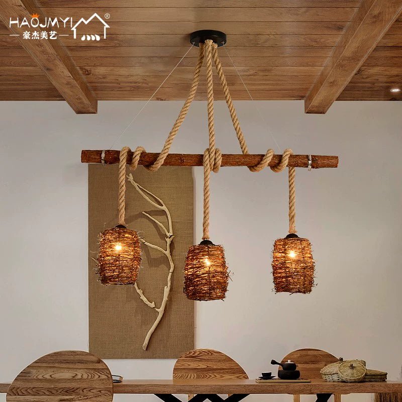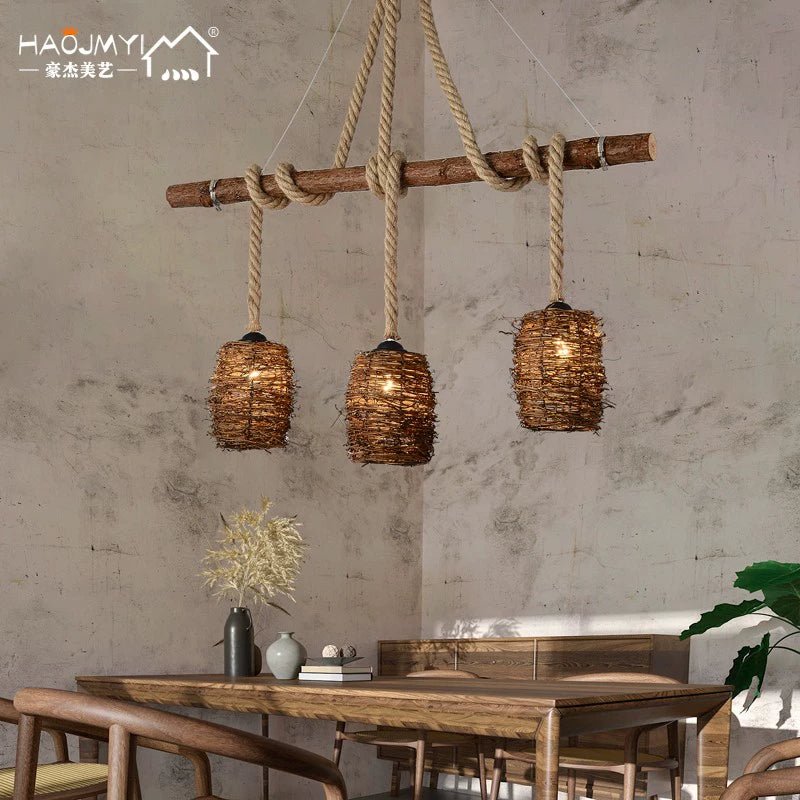 • Application polyvalente : Ideal for dining rooms, kitchens, and even living areas, this pendant light fixture can be used to create a focal point above a dining table or kitchen island. Its rustic design makes it a perfect fit for farmhouse kitchens, country-style dining rooms, or casual dining spaces.