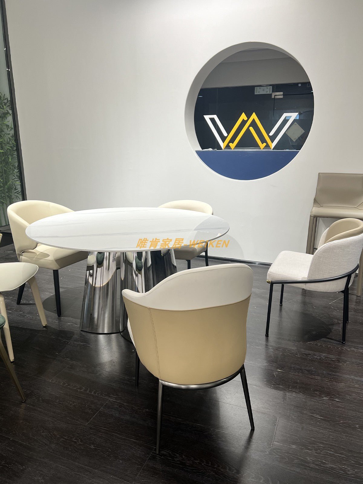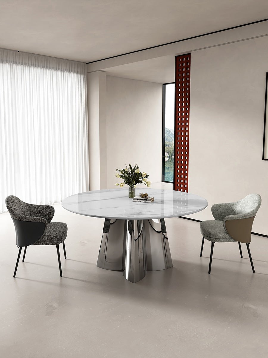 - trier par couleur:Black microfiber leather/cotton and linen, coffee microfiber leather/grey cotton and linen, beige cotton and linen/coffee microfiber leather/three-color cotton and linen, color customization/5A carbon steel tripod, black titanium stainless steel tripod, customized genuine leather, round table matching-style can be customized, long table matching-style can be customized