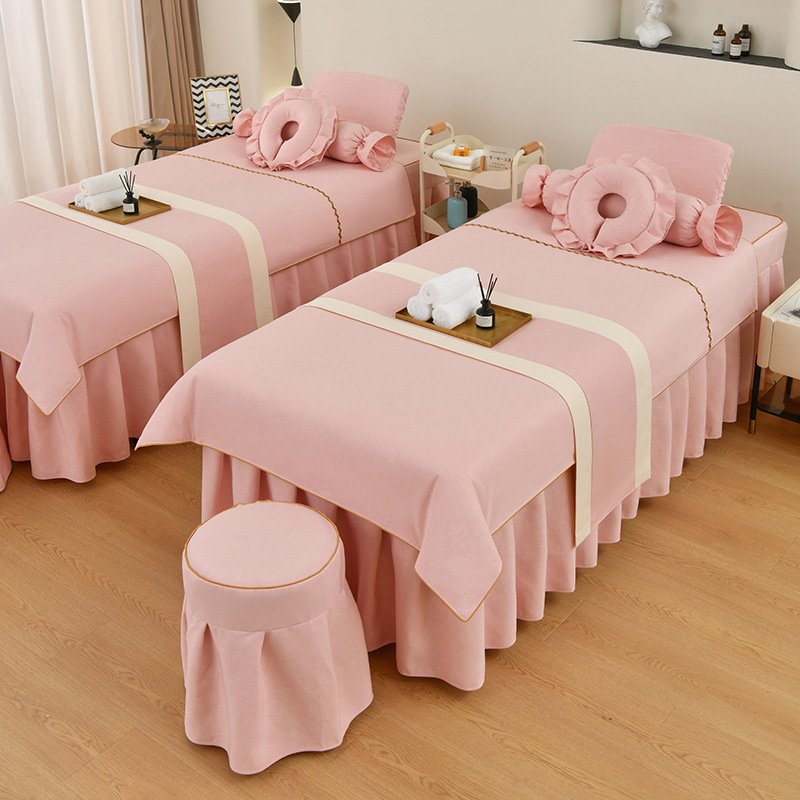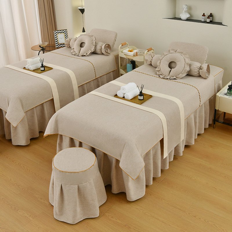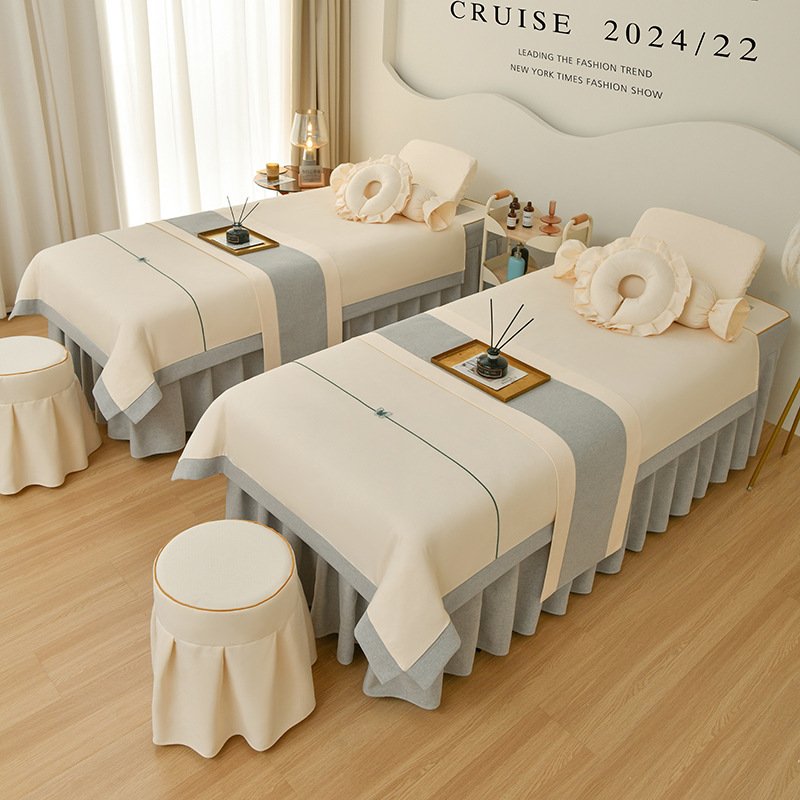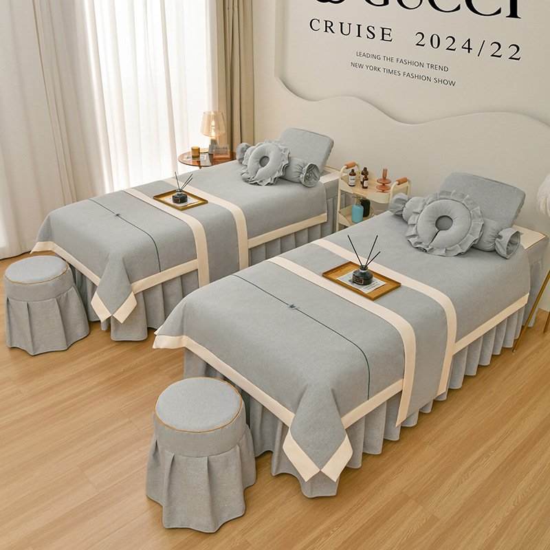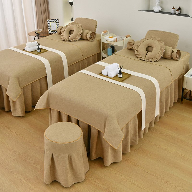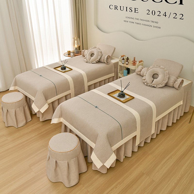 Couverture de lit de beauté, ensemble de quatre pièces en coton et lin, couverture de lit de massage thérapeutique spécial salon de beauté haut de gamme, couverture de lit de shampoing thérapeutique pour le nettoyage des oreilles