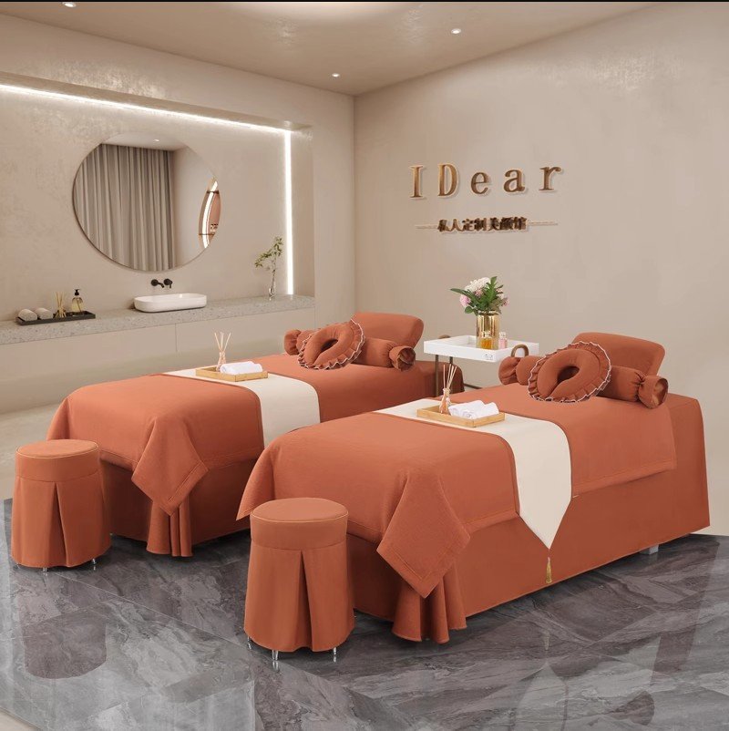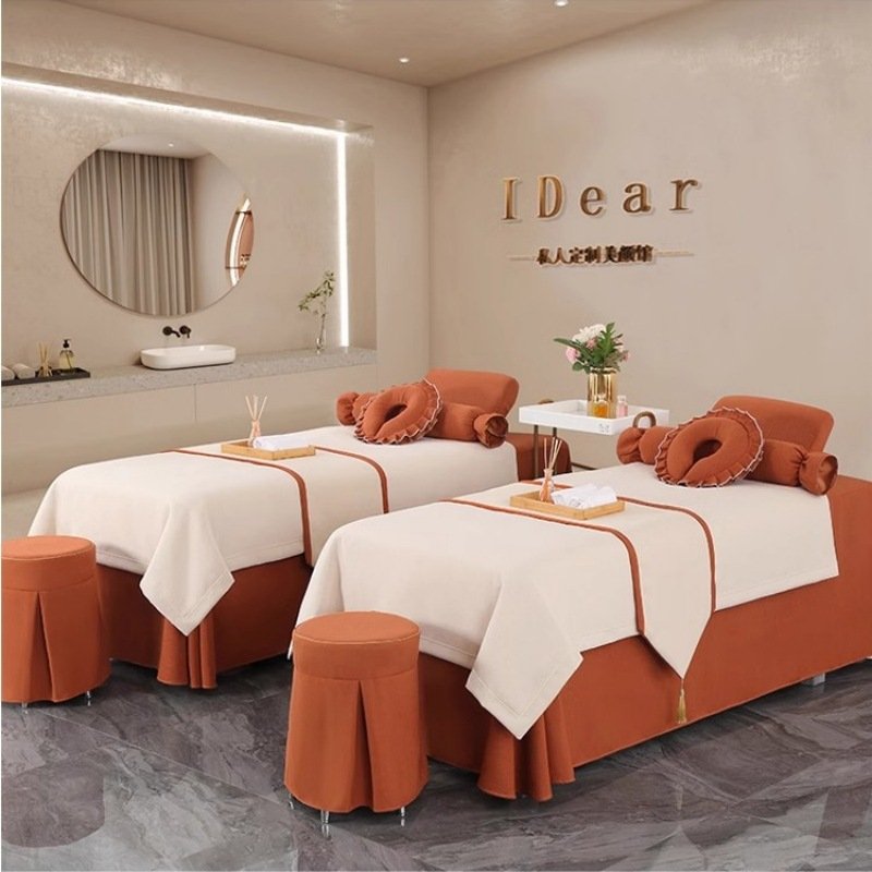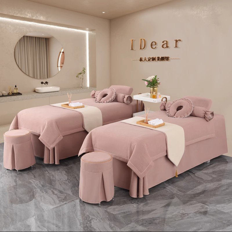 Housse de lit de beauté quatre pièces ensemble haut de gamme léger luxe salon de beauté SPA lit de massage tête simple thérapie lit couverture sur mesure quatre saisons universel