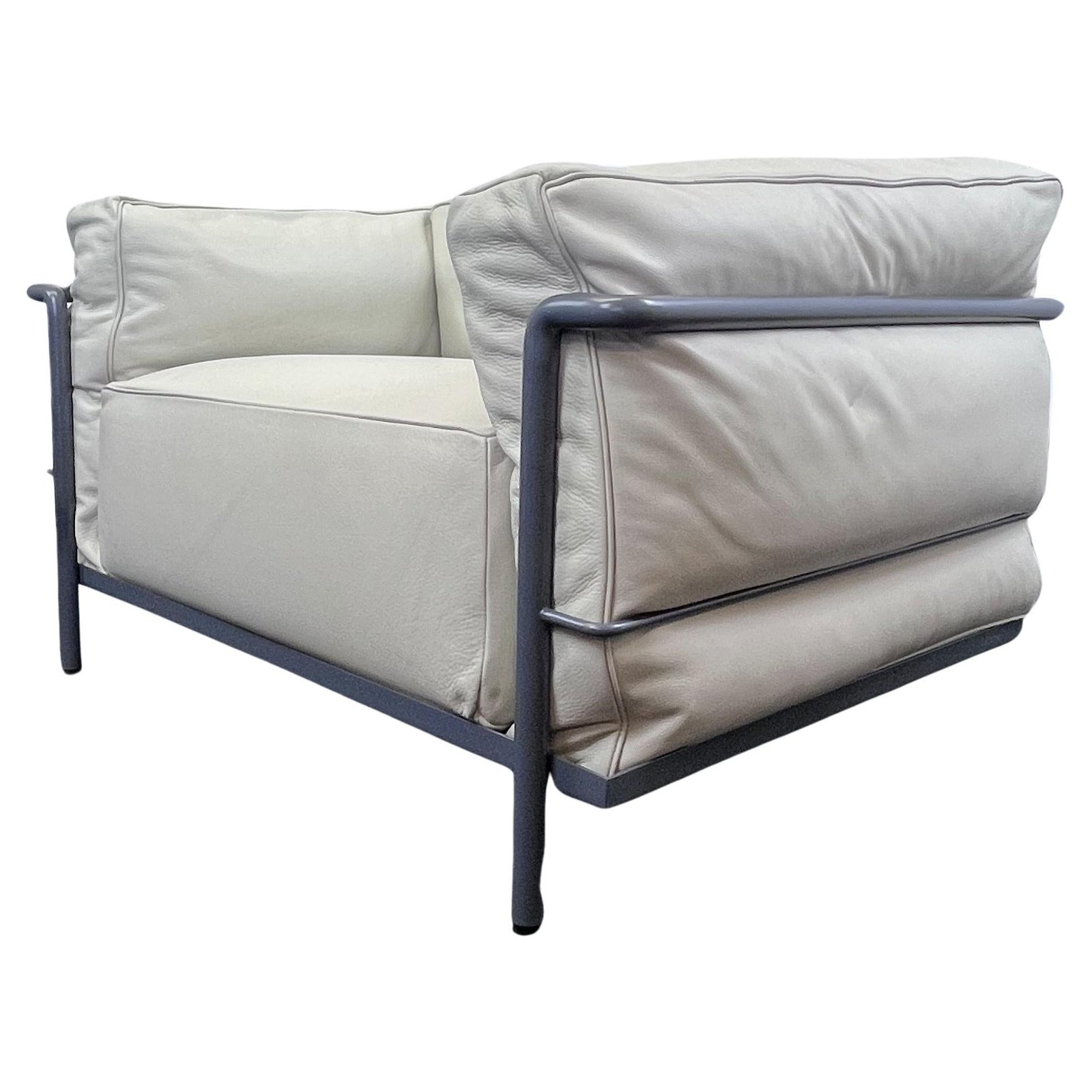 Présentation de l'emblématique canapé deux places Le Corbusier LC3, conçu à l'origine par Le Corbusier, Pierre Jeanneret et Charlotte Perriand en 1928. Cette pièce exquise, produite par Cassina en Italie dans les années 2010, allie signification historique et savoir-faire moderne.