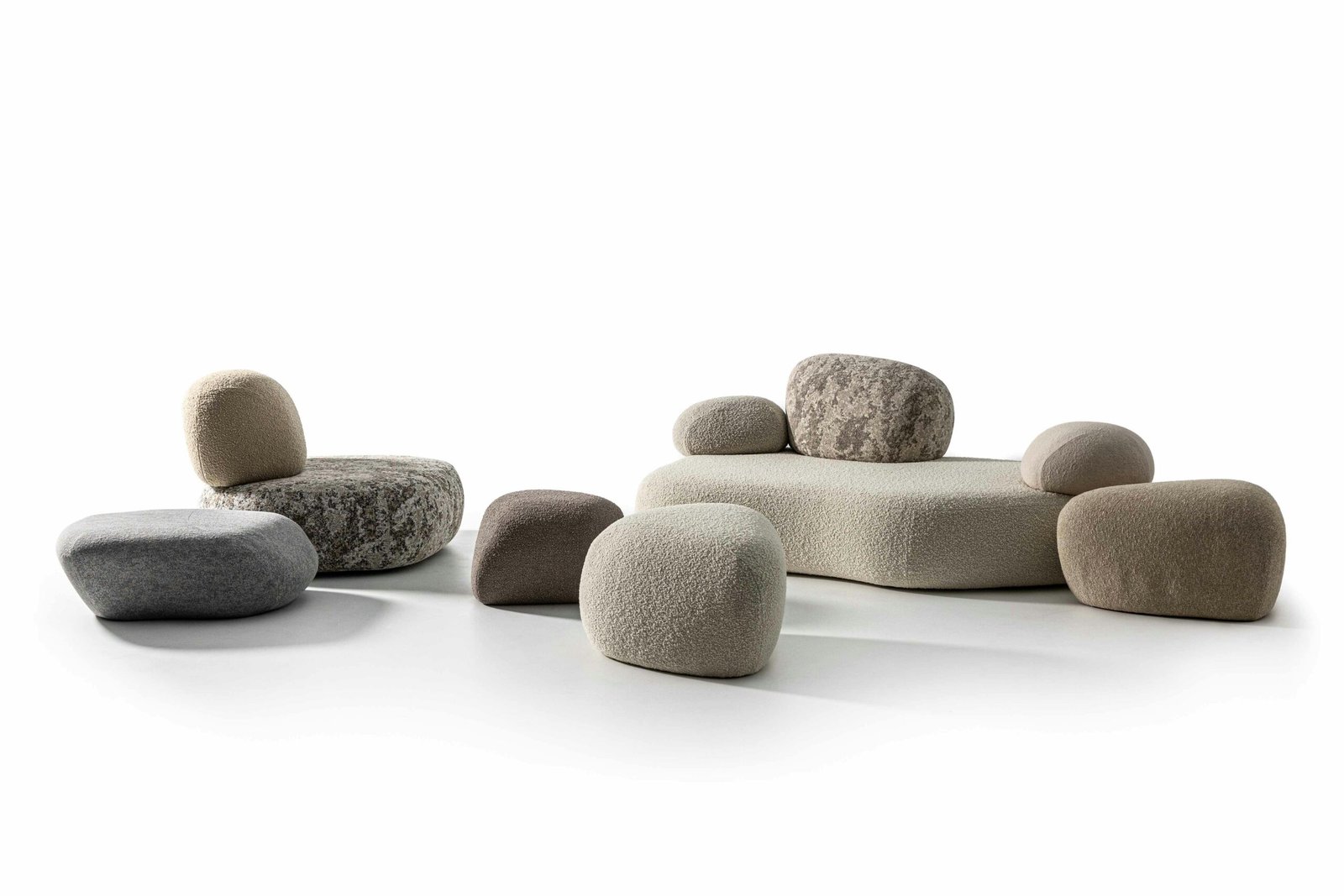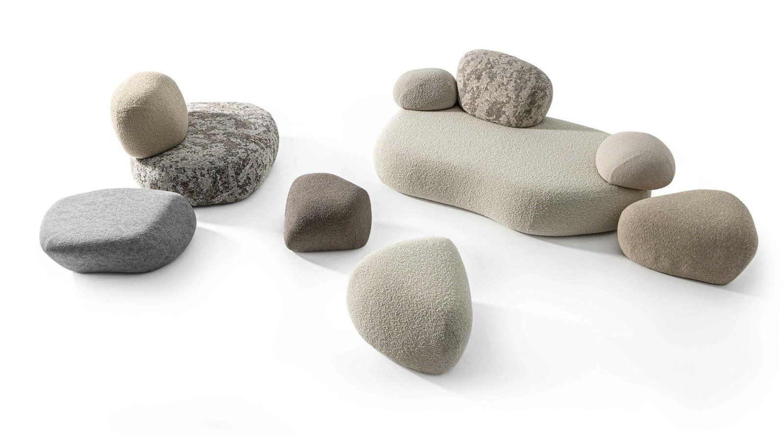 Pebble Rubble, imaginé par le duo de designers suédois Sofia Lagerkvist et Anna Lindgren de Front Design pour Moroso, est une expérience sensorielle. Une illusion qui nous attire et nous captive, modifiant notre perception du temps. Aux côtés de notre routine quotidienne frénétique, le rythme lent et infini de la nature. Citation de Sofia Lagerkvist et Anna Lindgren : « Pebble Rubble s'inspire de formes trouvées dans la nature. Enfants dans notre Suède natale, la forêt était notre terrain de jeu, et nous imaginions des rochers, de la mousse et des arbres tombés comme des meubles et des espaces de repos et d'occupation. Pour ce groupe de sièges, nous avons scanné en 3D des rochers aperçus lors de nos nombreuses promenades en forêt et avons composé ces formes organiques pour en faire des meubles. Une installation scénique qui ne se limite pas à une simple simulation, mais repose sur une longue recherche au cours de laquelle les designers ont étudié les bienfaits thérapeutiques de la nature sur la santé physique et mentale, ainsi que la signification culturelle et psychologique des environnements naturels, en particulier ceux présents dans leur Suède natale. Bien qu'il soit principalement destiné aux secteurs de l'entreprise et de l'hôtellerie, Pebble Rubble est composé de 15 modules (assises et dossiers) complétés par 3 repose-pieds qui permettent un processus de composition libre, flexible et créatif. Les possibilités d'agencement sont infinies, du simple fauteuil à la création d'un panorama sophistiqué, et l'ensemble contribuera à rendre tout projet d'intérieur magique et unique.