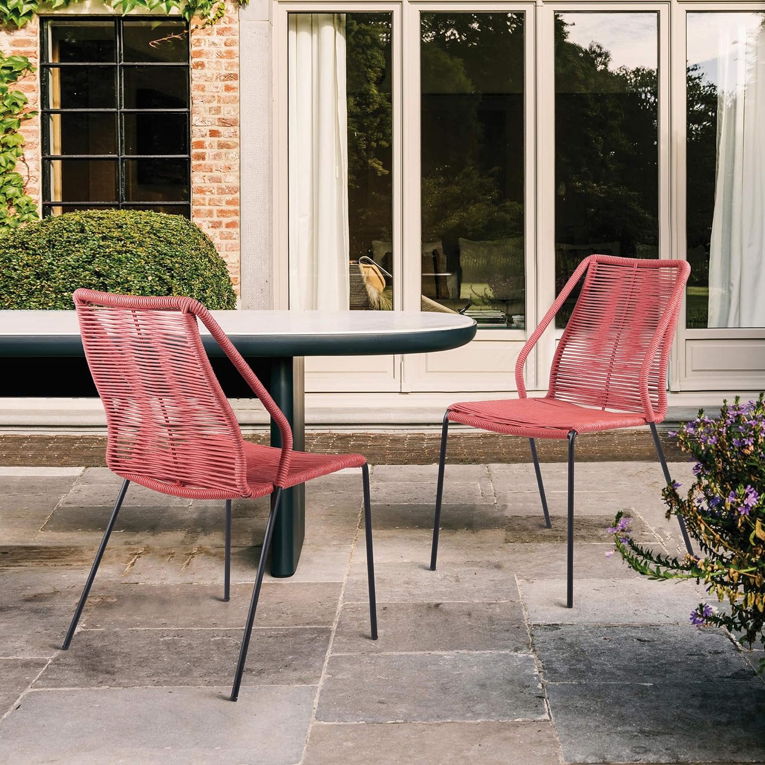 20 avis pour Armen Stackable Steel Dining Chairs with Brick Red Rope – Set of 2