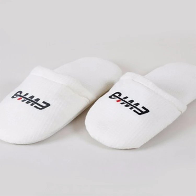 16 avis pour Customized Embroidery Logo 12*30cm Closed Toe Soft White Hotel Slipper