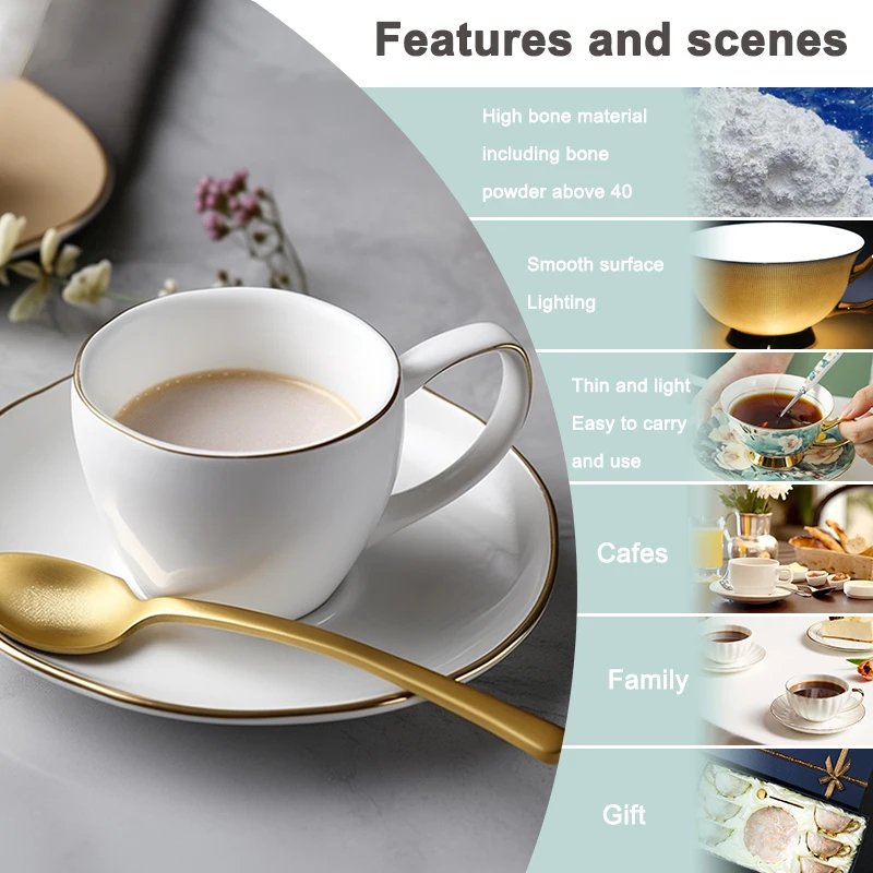 Soyez le premier à laisser votre avis sur “Customized Spot White Porcelain Coffee Tea Set Cafe Espresso British Tea Cup and Saucer Set Bone China Tea Set Luxury Classic”
