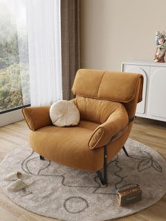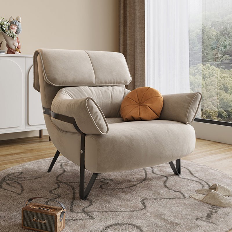 Modern Suede Lounge Chair – Stylish Comfort with High-Back Pillow