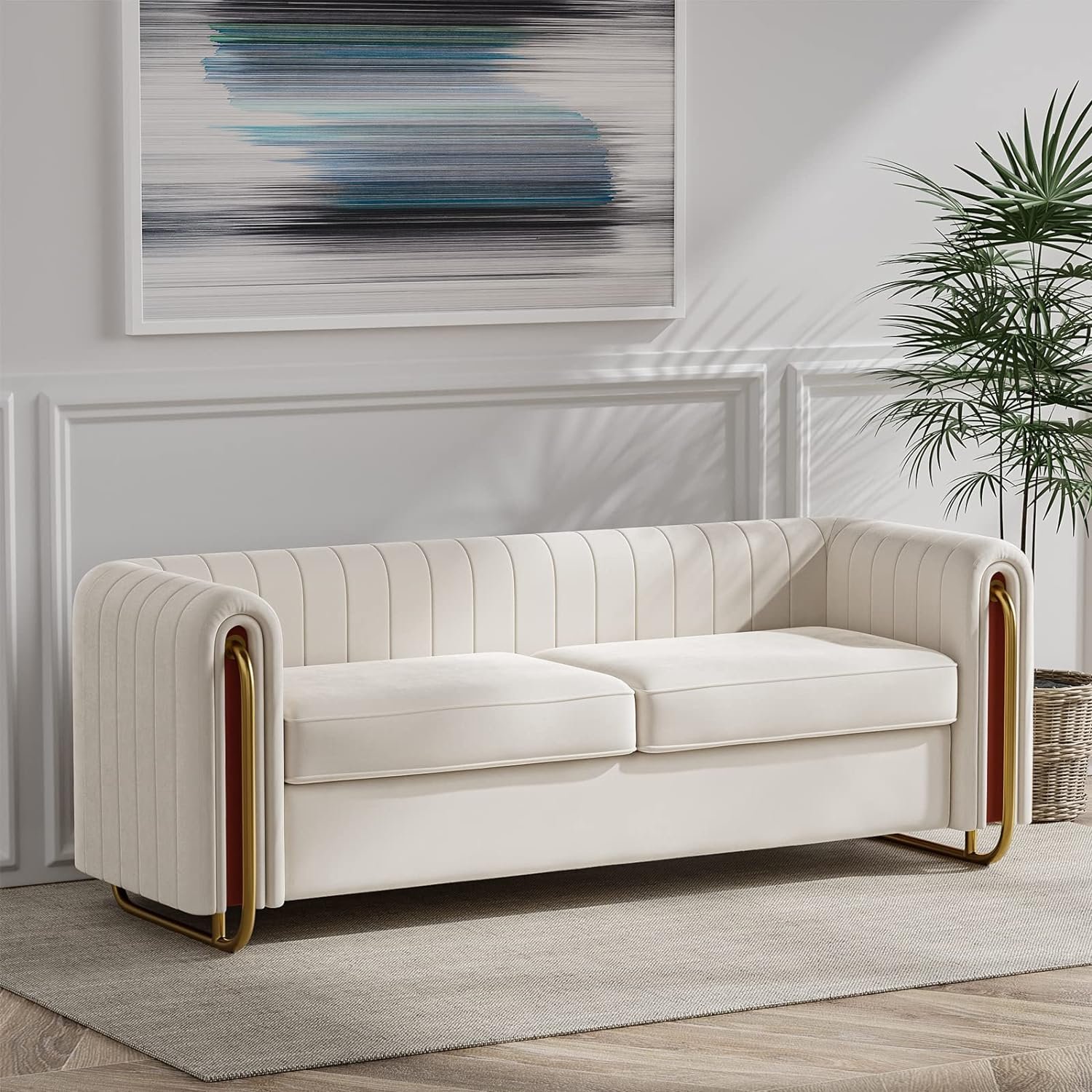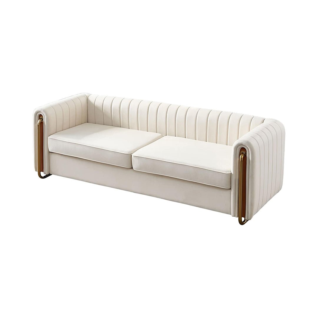 Dolonm Velvet Sofa - 84″ Modern Beige Couch with Metal Legs