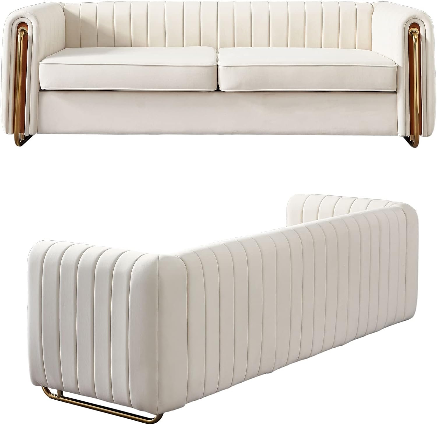 • ✨ Modern Elegance: Sleek velvet sofa with gold metal legs, perfect for enhancing your living room, bedroom, or office decor.