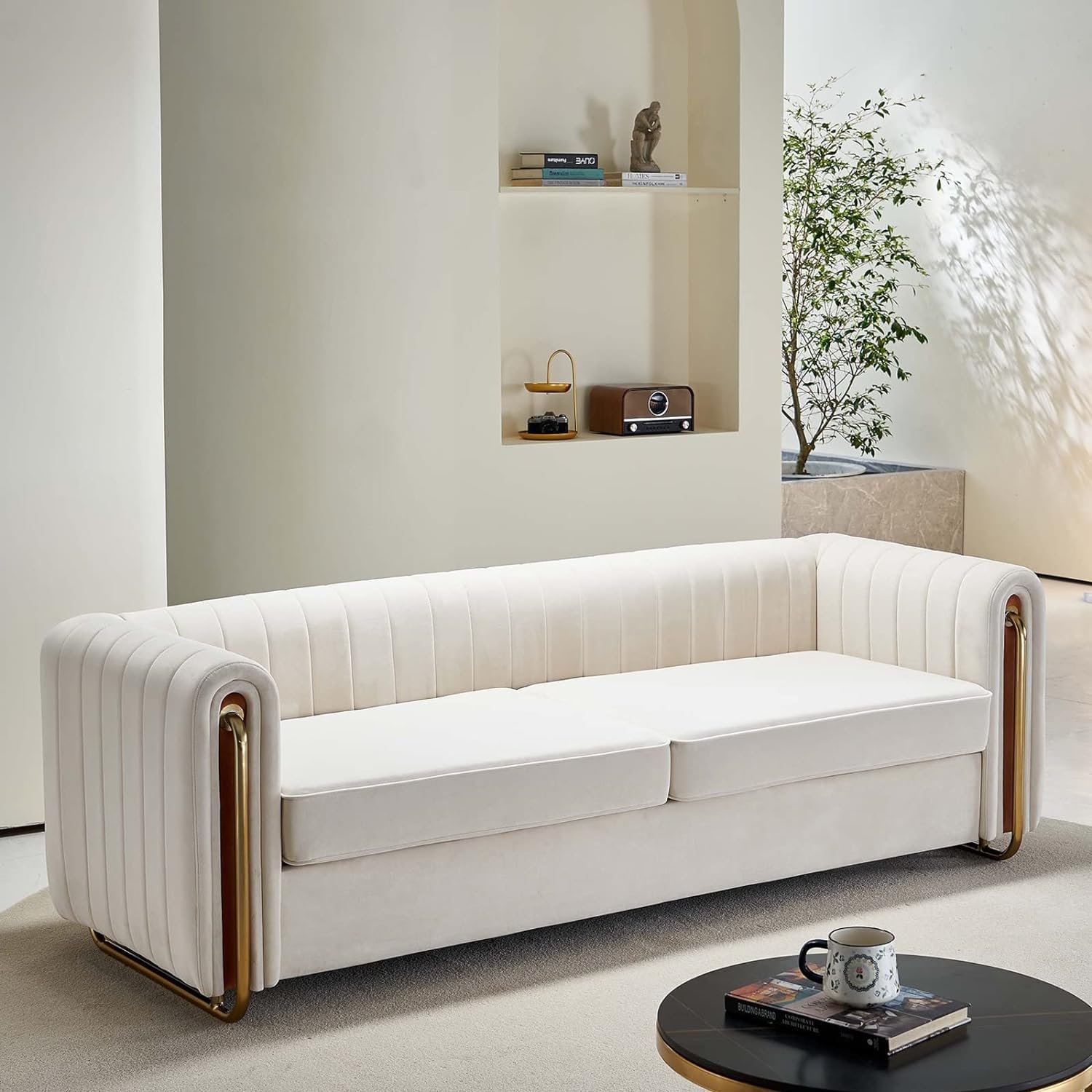 • 🛋️ Velvet Tufted Design: Luxurious velvet upholstery with a soft touch. The large and deep seat comfortably accommodates up to 3 people.