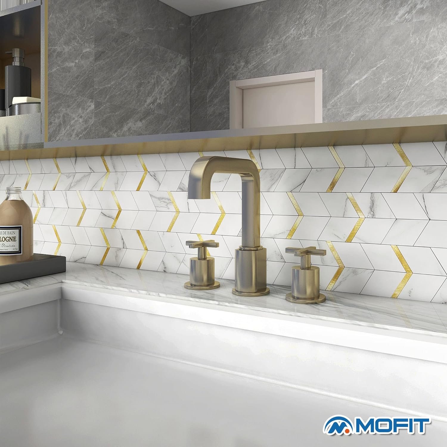 Dosseret autocollant 3D MOFIT – Carreaux or blanc