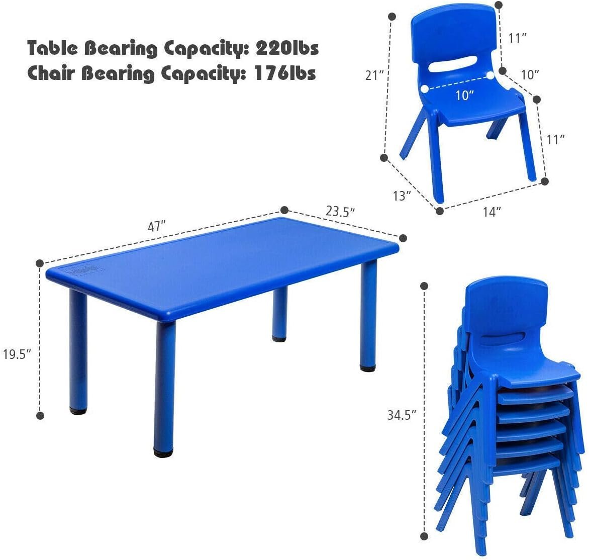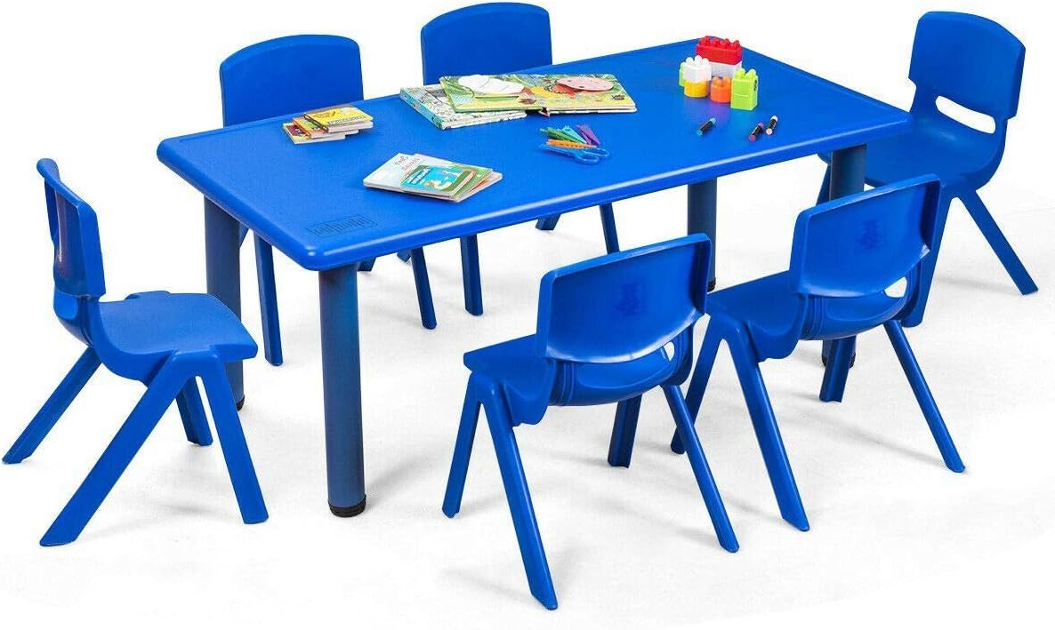 Costzon Kids Table & Chair Set - 6 chaises empilables, bleu