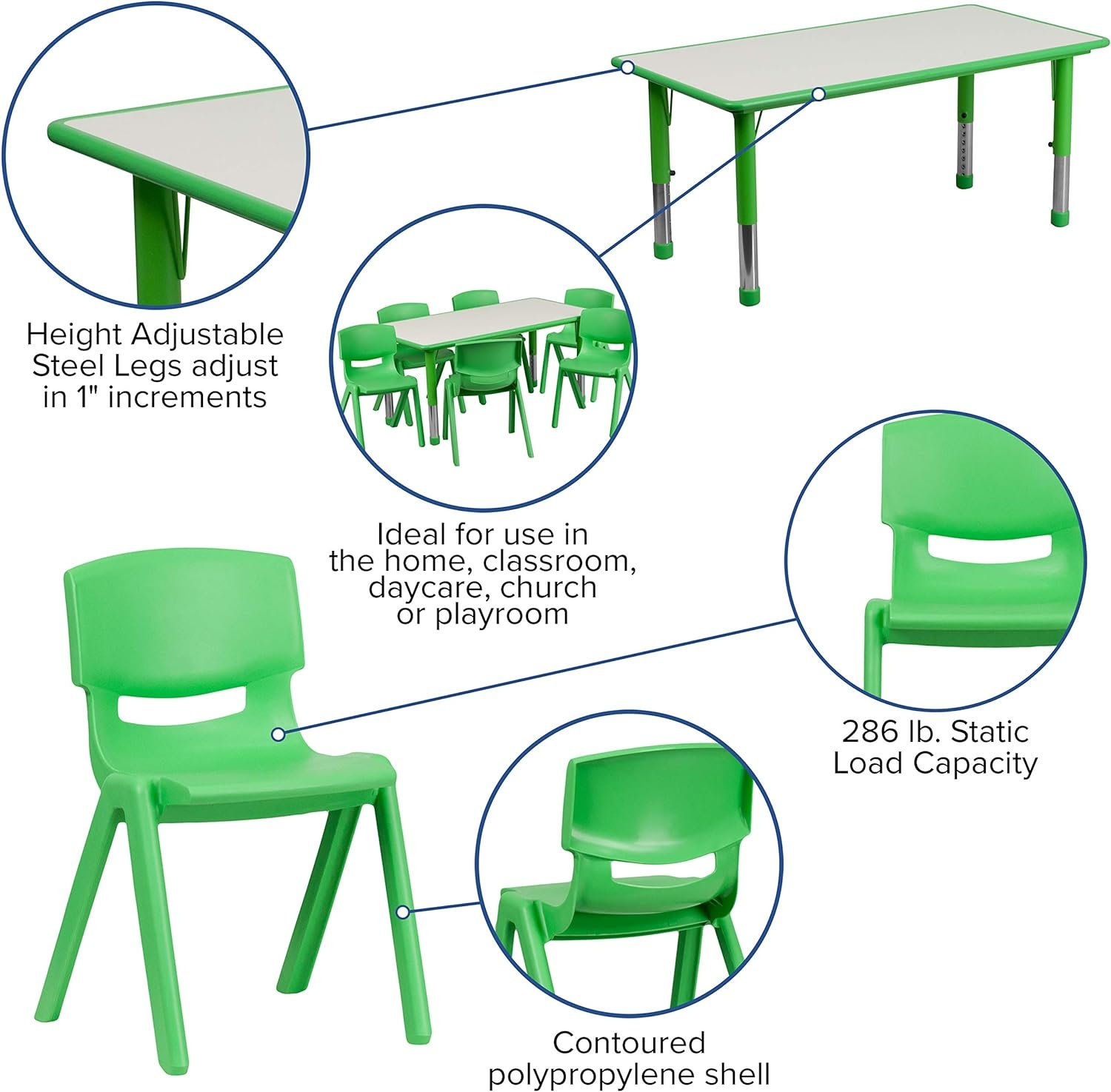 28 avis pour Flash Furniture Emmy Kids Activity Table & 6 Chairs, Green/Gray