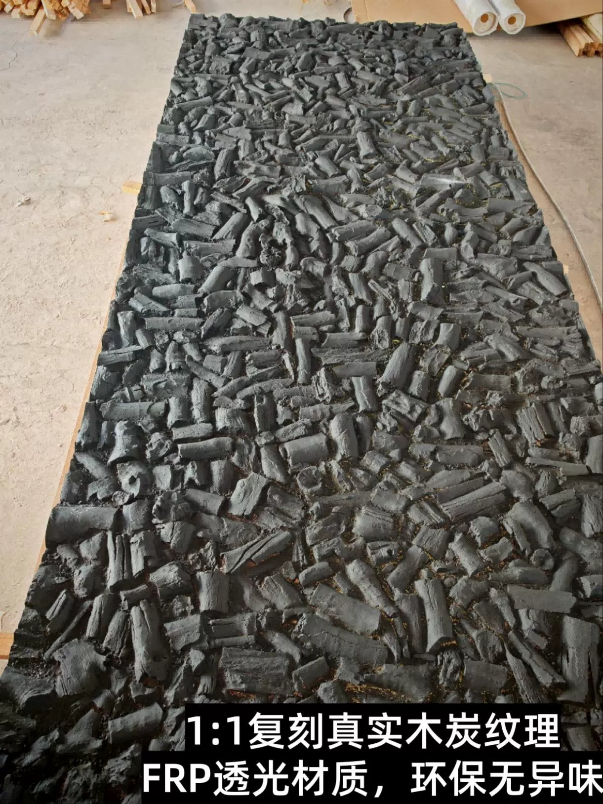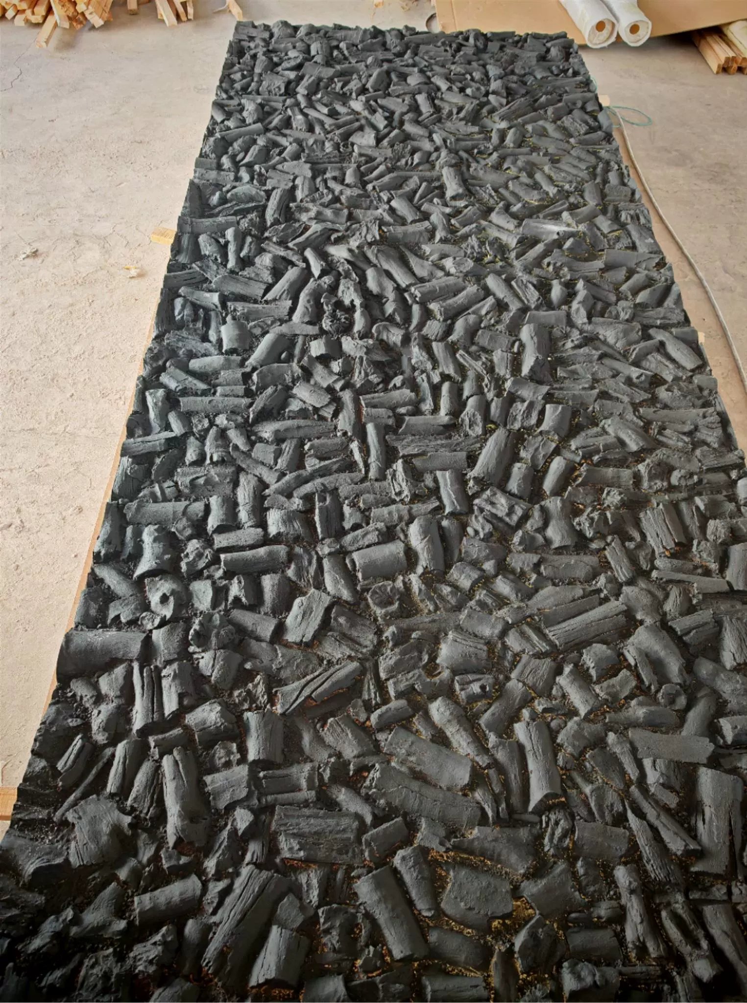 Panneau mural en bois carbonisé de charbon de bois et de roche volcanique