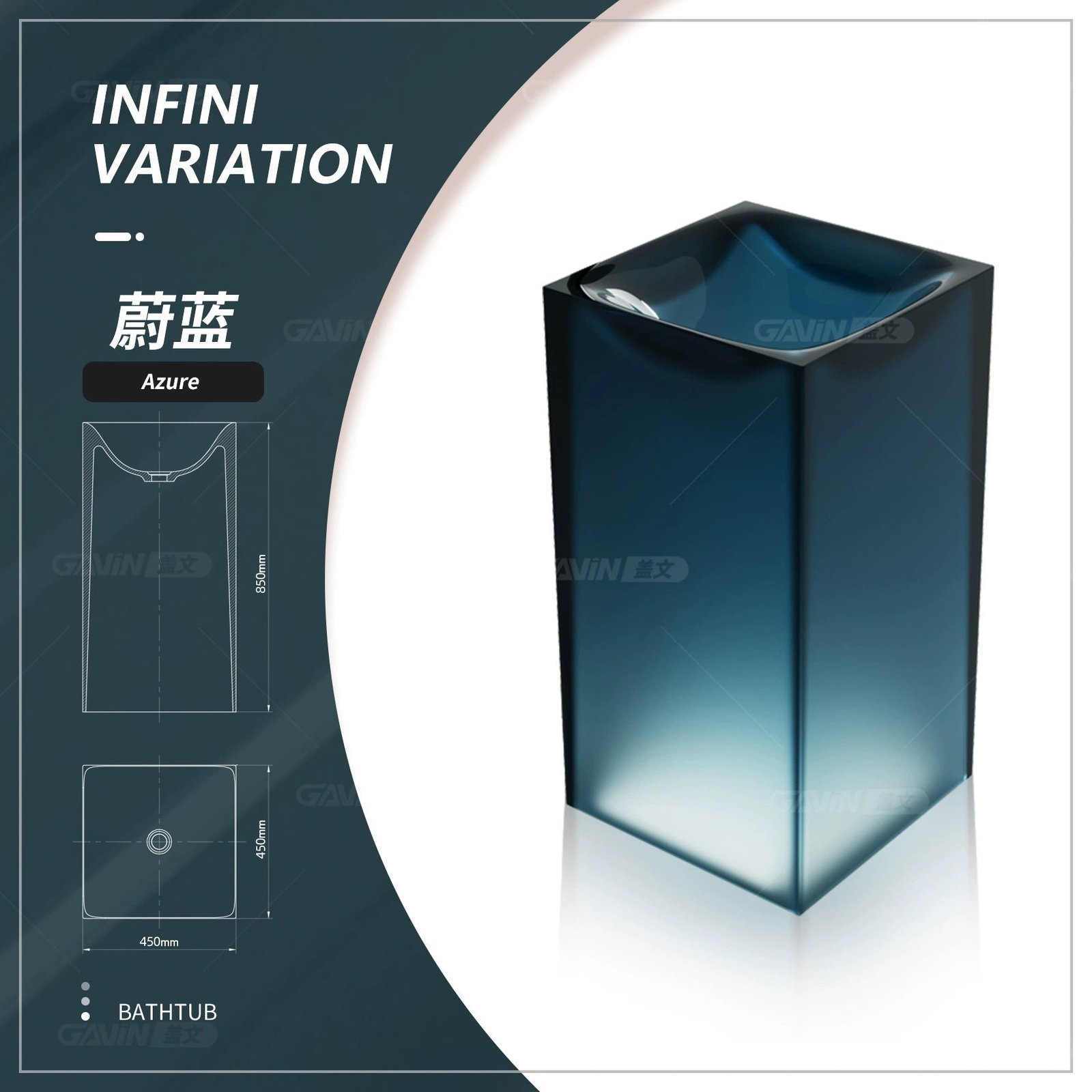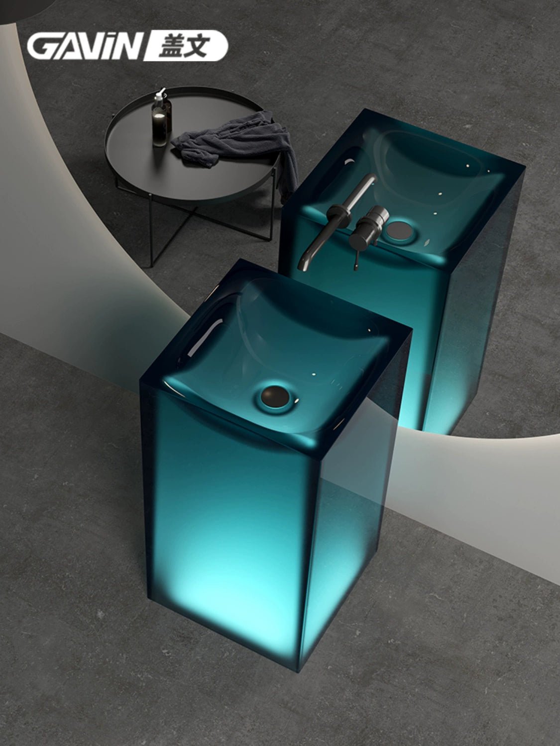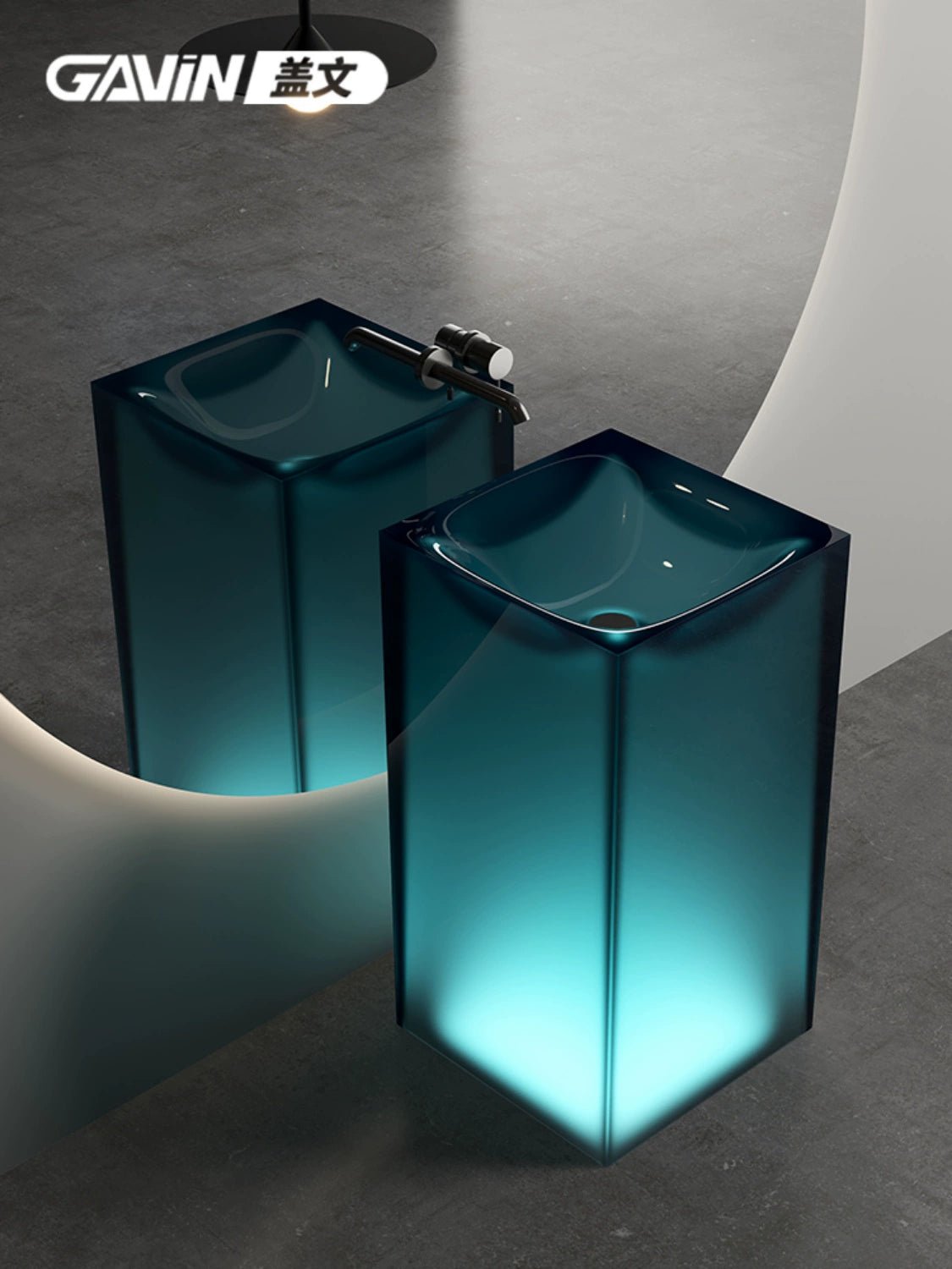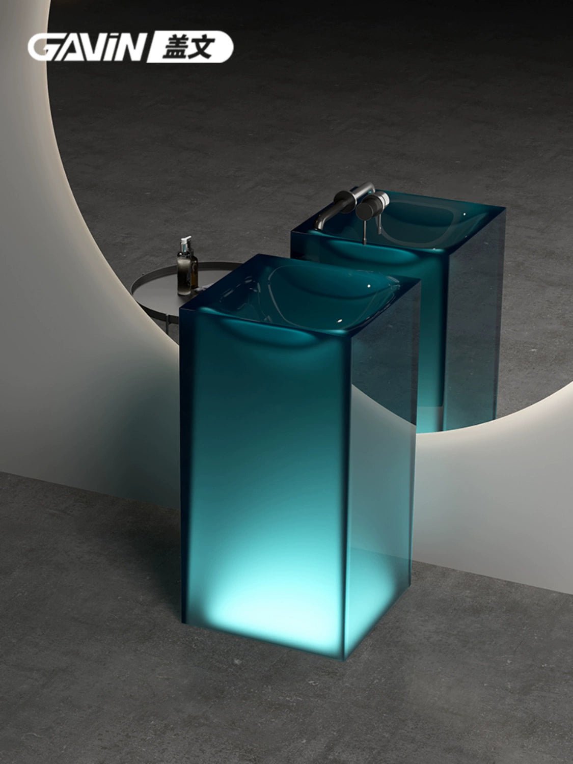 Vasque à colonne en résine transparente Gavin – Personnalisable