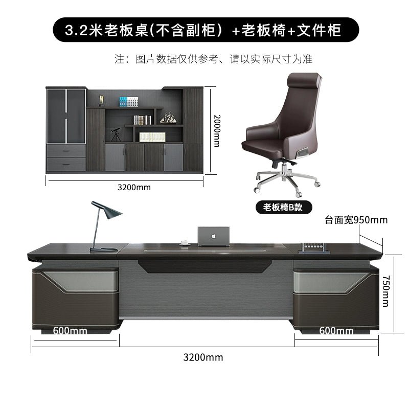 - trier par couleur:2.0m boss desk (without side cabinet) 2.2m boss desk (without side cabinet) 2.4m boss desk (without side cabinet) 2.8m boss desk (without side cabinet) 3.2m boss desk (without side cabinet) 2.0m boss desk (without side cabinet) + boss chair type A2.2m boss desk (without side cabinet) + boss chair type A2.4m boss desk (without side cabinet) + boss chair type A2.8m boss desk (without side cabinet) + boss chair type B3.2m boss desk (without side cabinet) + boss chair type B2.0m boss desk (without side cabinet) + boss chair type A + 2.5m file cabinet2.2m boss desk (without side cabinet) + boss chair type A + 2.5m file cabinet2.4m boss desk (without side cabinet) + boss chair type A + 2.5m file cabinet2.8m boss desk (without side cabinet) + boss chair type B + 3.2m file cabinet3.2m boss desk (without side cabinet) + boss chair type B + 3.2m file cabinetBoss chair type B2088 If you need a side cabinet, purchase it separately for 680 yuan/piece (please contact customer service for details)