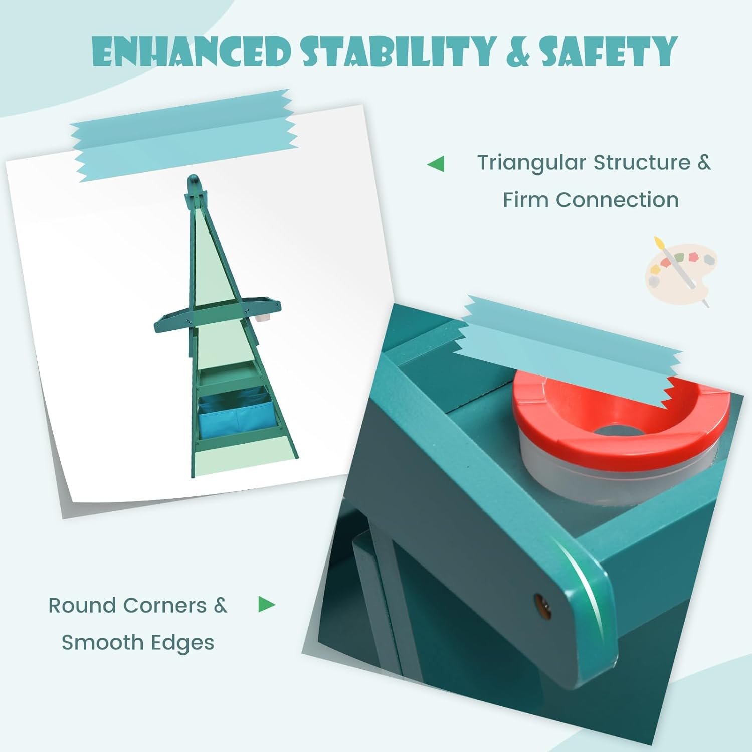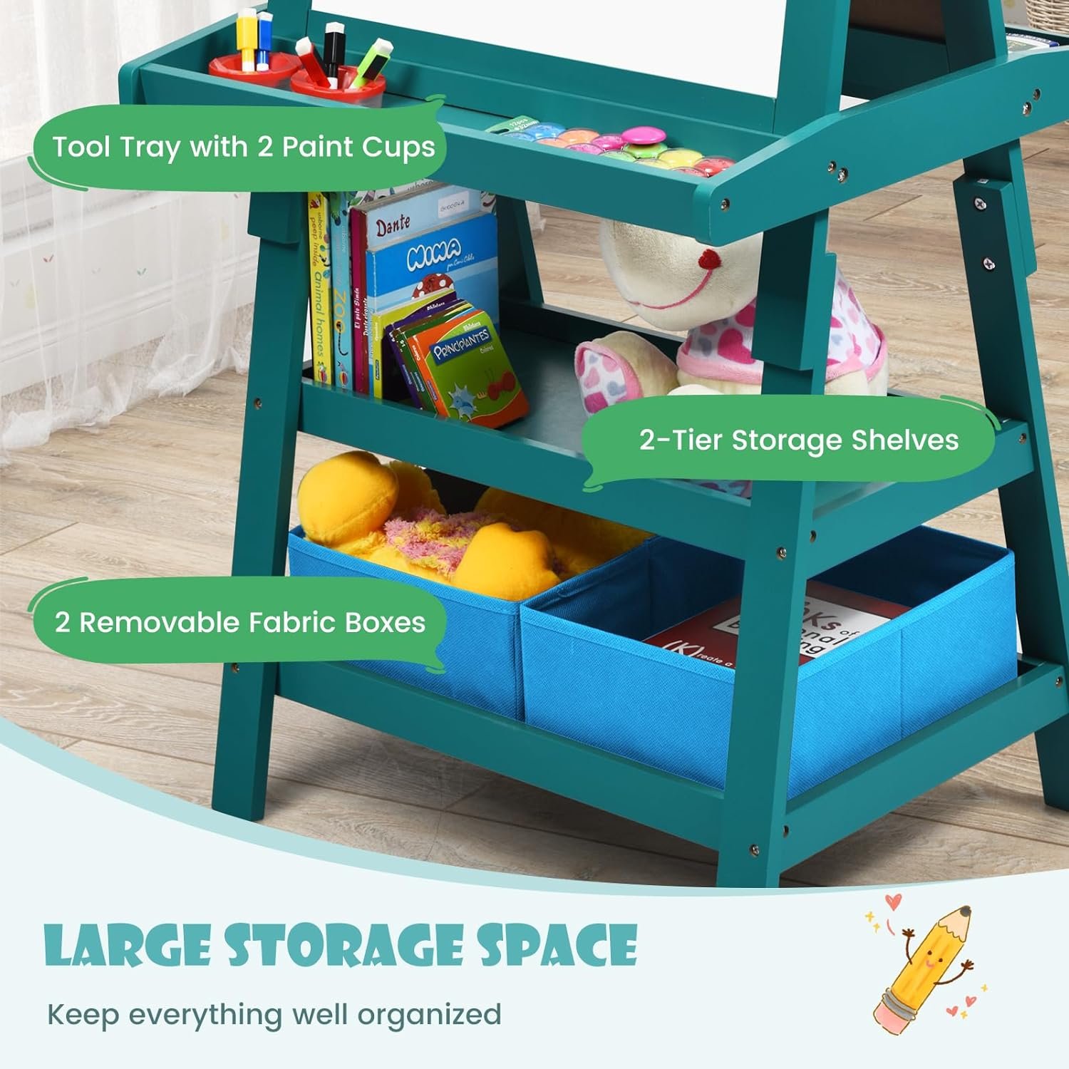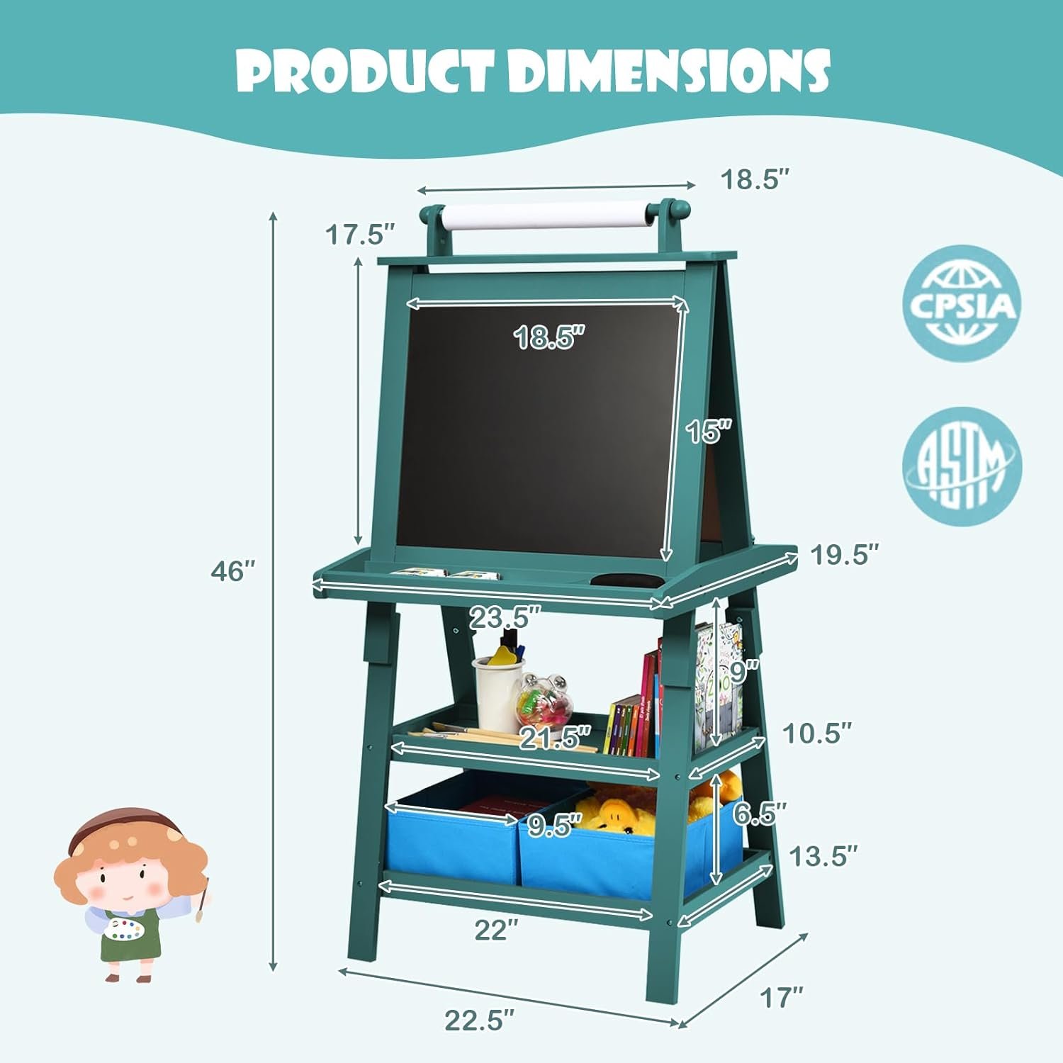 🛍️ Ample Storage: With two trays beneath the drawing board and two-tier storage shelves, this easel offers ample space to store art supplies, keeping them organized and easily accessible for budding artists.