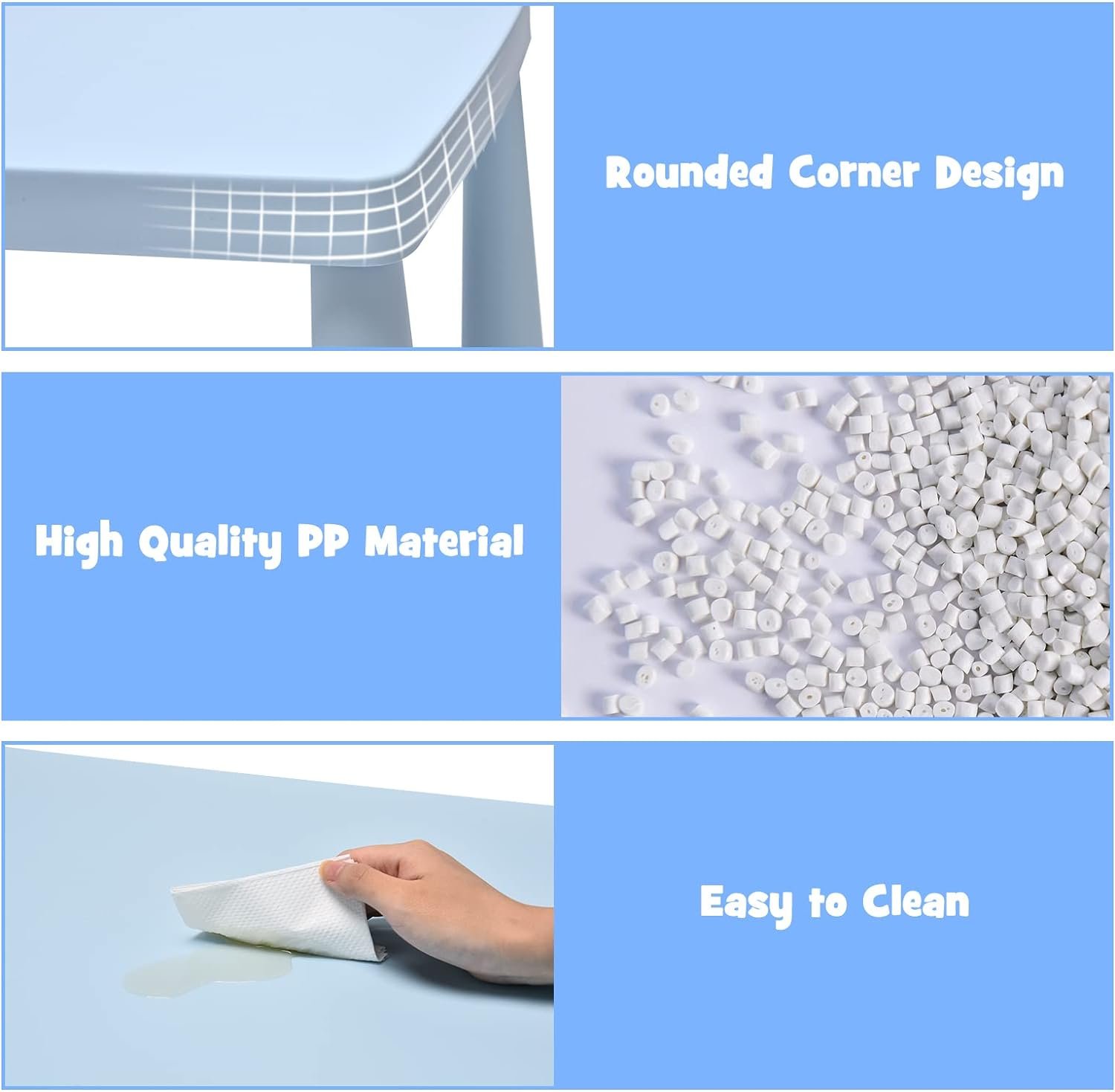 🌟 Sturdy and Safe: Crafted from durable PP material, this set is built to withstand the rigors of childhood while providing a stable base for play. Each chair can support up to 110 lbs, ensuring safety and stability.
