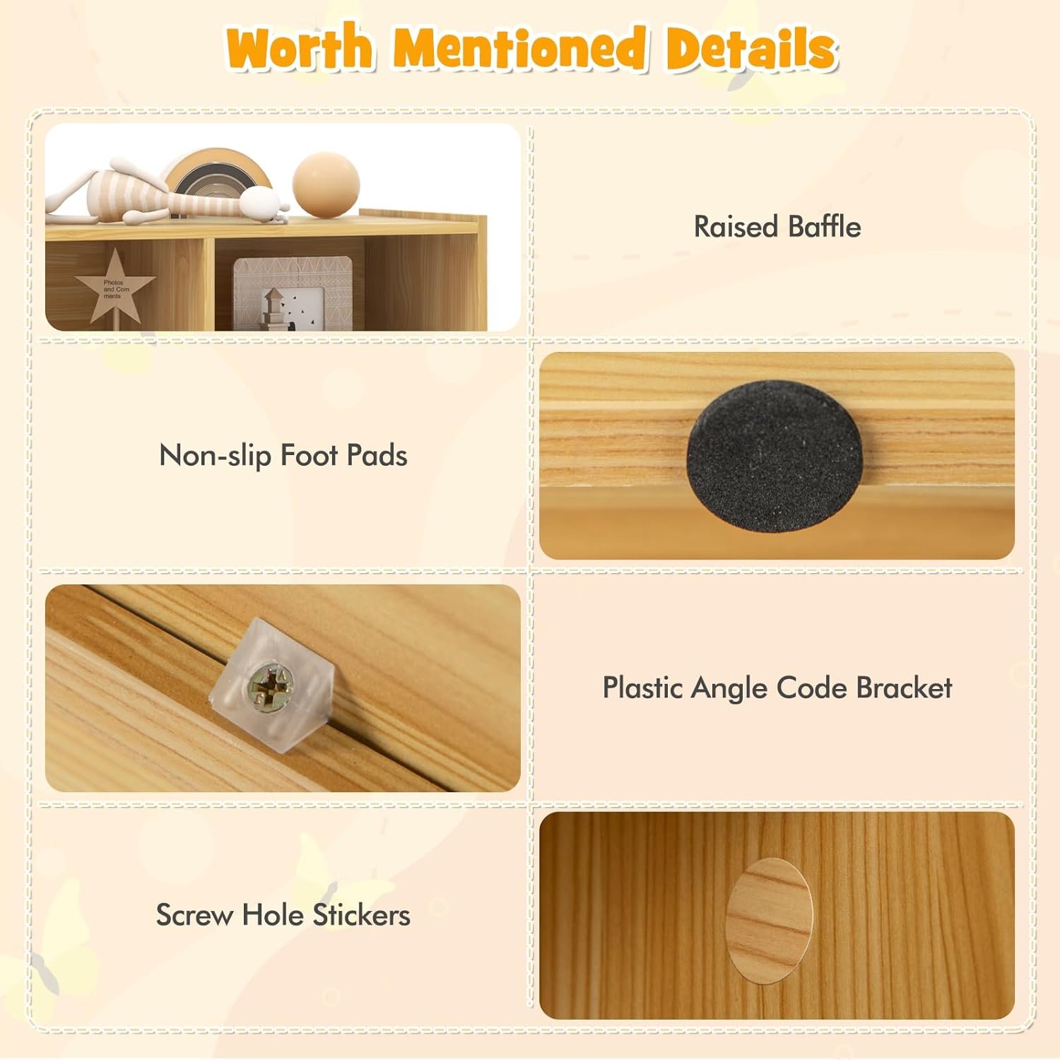 🌟 Selected Material & Great Loading Capacity: Crafted from high-quality engineered wood with scratch-resistant and waterproof veneer, this toy organizer is built to last. The thick boards and solid construction ensure each cube can support up to 132 lbs on the top and 44 lbs inside.