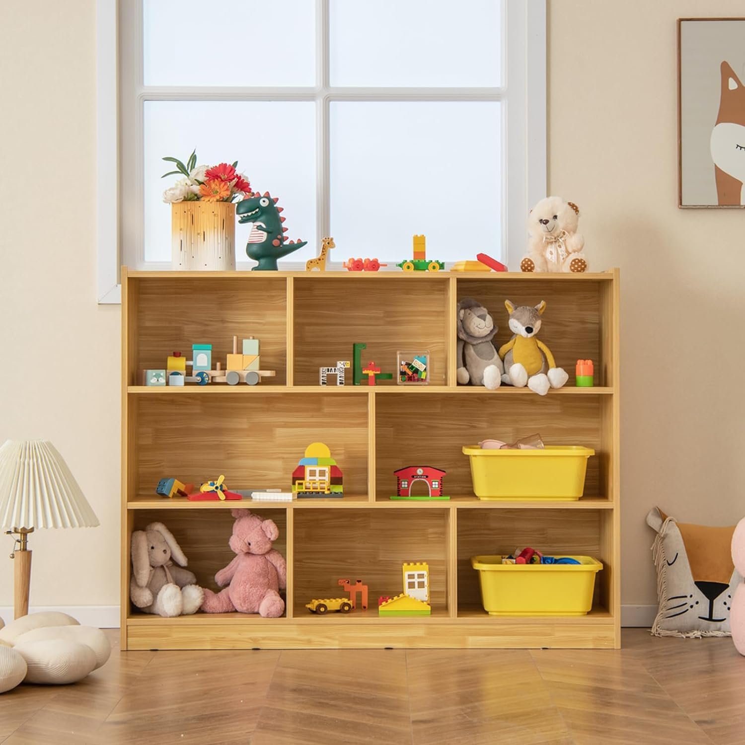 🏡 Conception polyvalente: With its simple lines and practical design, this toy storage organizer seamlessly blends into any space, whether it’s a daycare, playroom, living room, bedroom, or kindergarten. Use it as a storage unit, bookcase, or display rack to add extra storage space wherever needed.