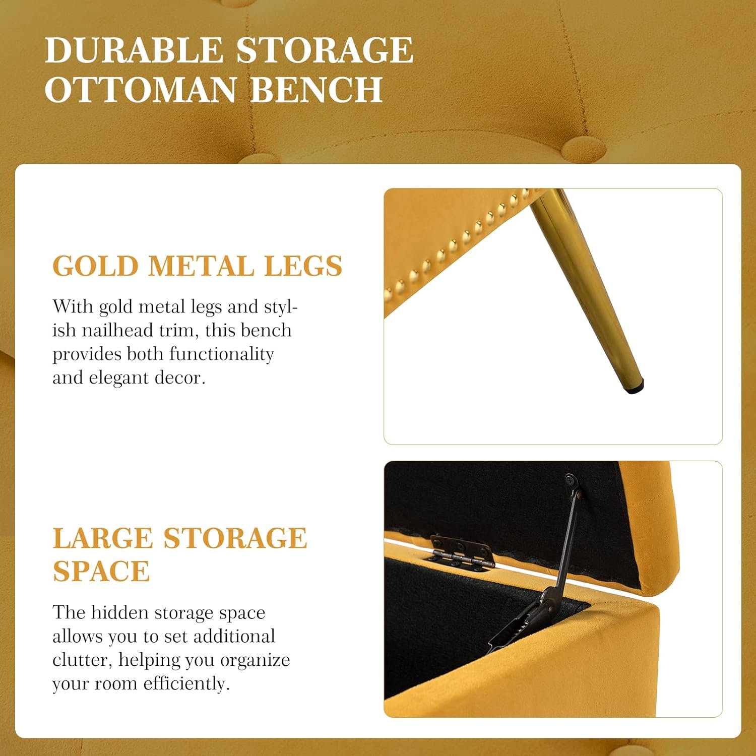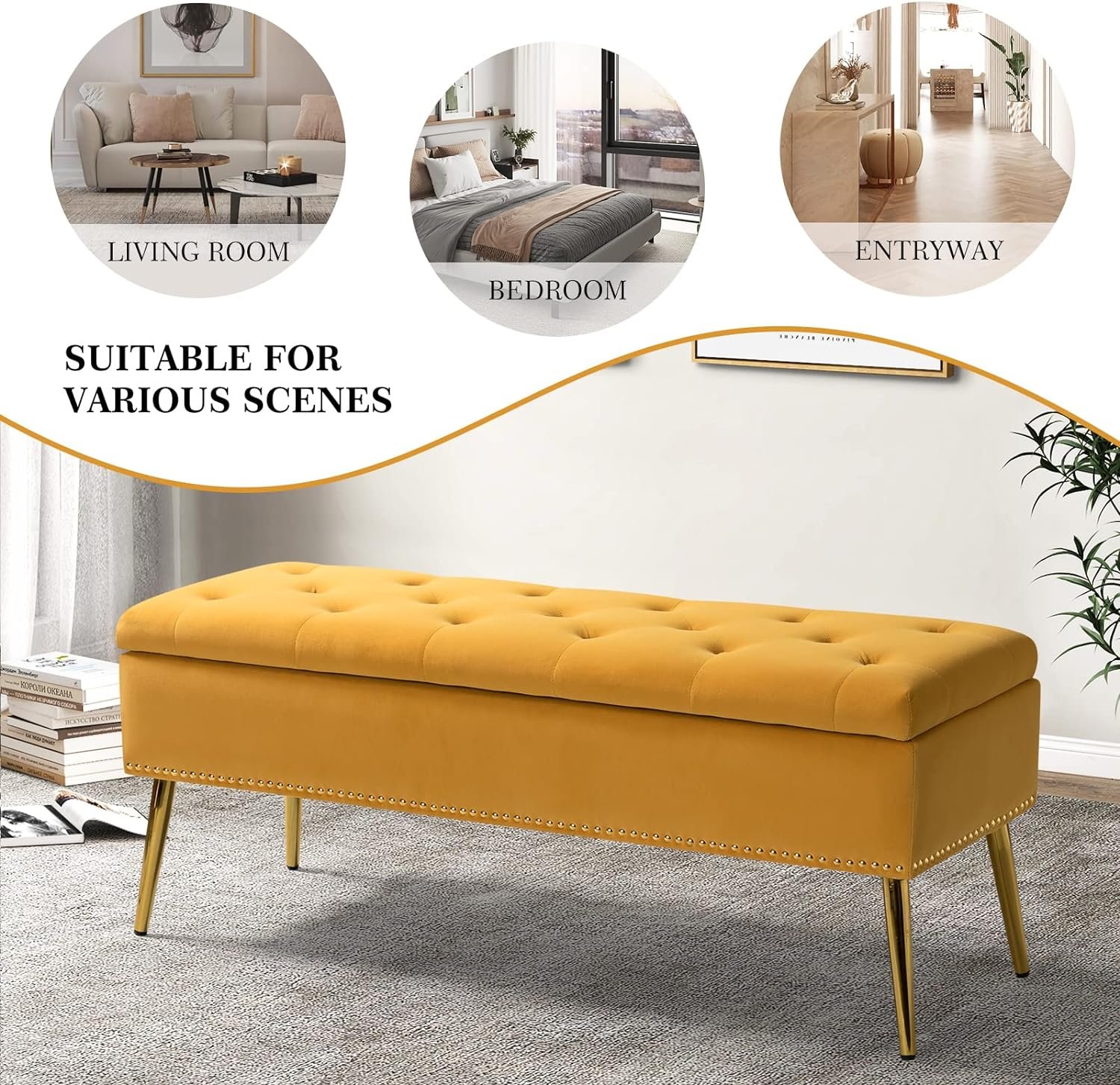 29 avis pour HULALA HOME Mustard Velvet Storage Ottoman Bench