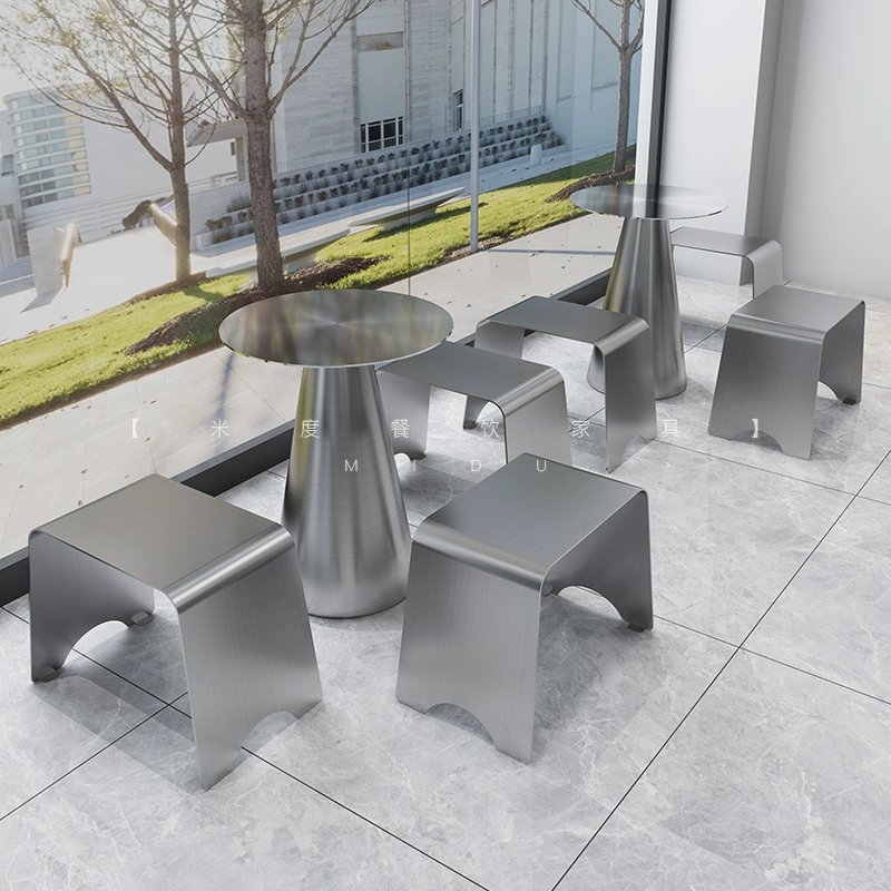 Banquette et tabourets de café en acier inoxydable de style industriel