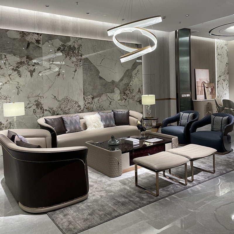 Italian Light Luxury Leather Sofa – Postmodern Elegance