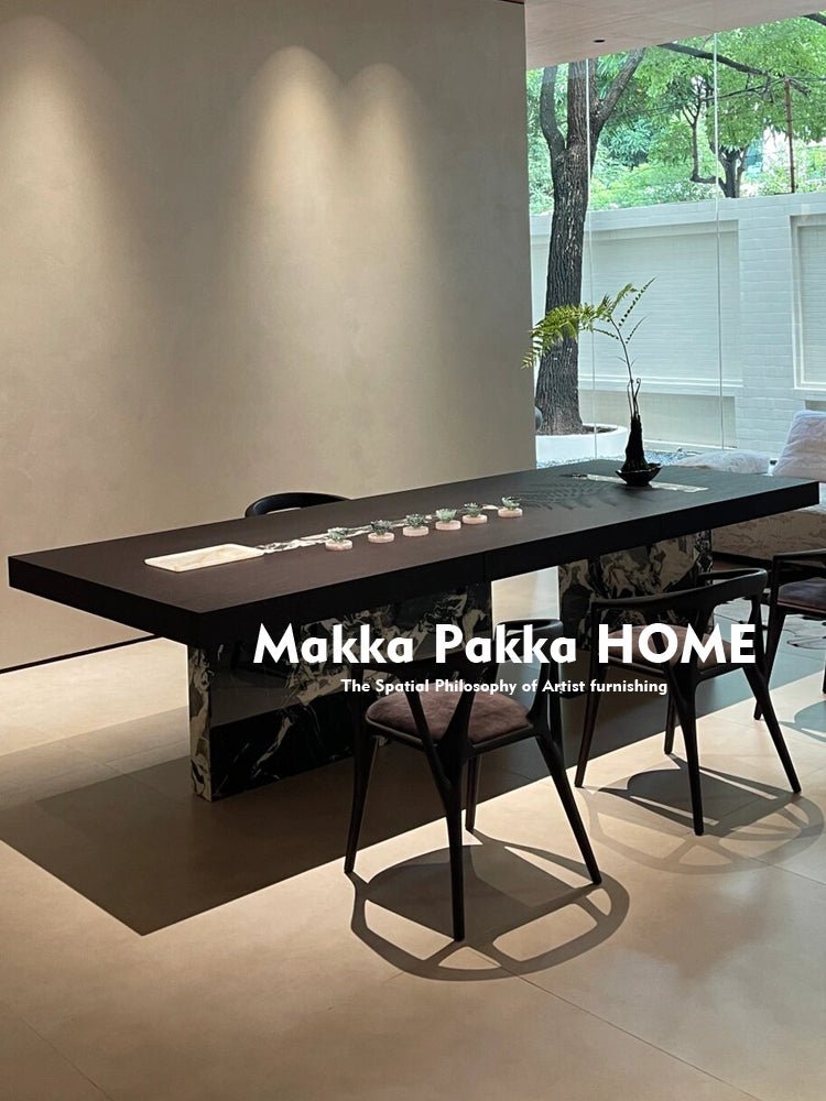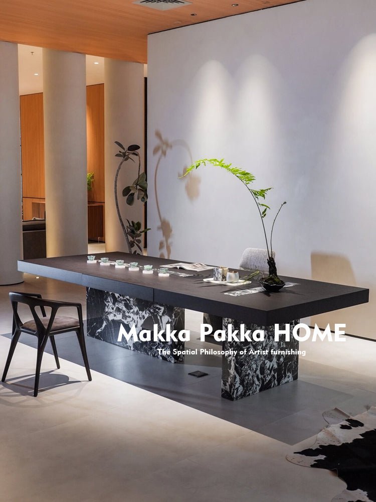 Italian Minimalist Solid Wood & Marble Tea Table