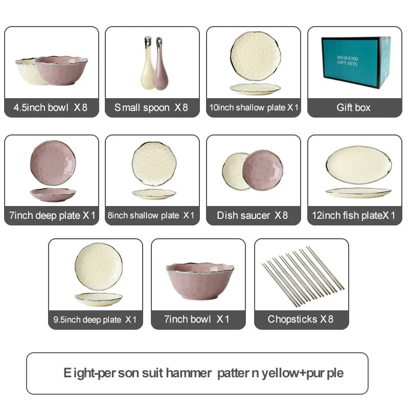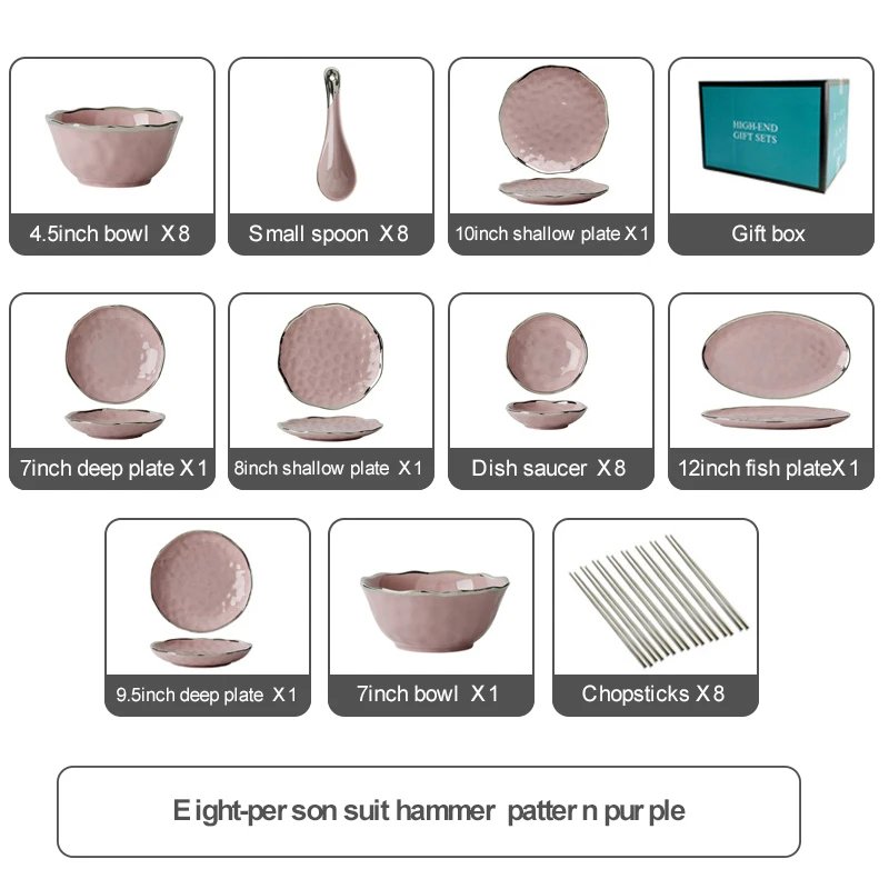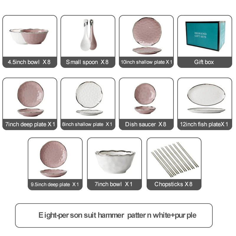 21 avis pour Luxury Porcelain Ceramic Dinnerware Sets for 8 People User White/Pink Household Tableware with Bowls and Plates for Home Use