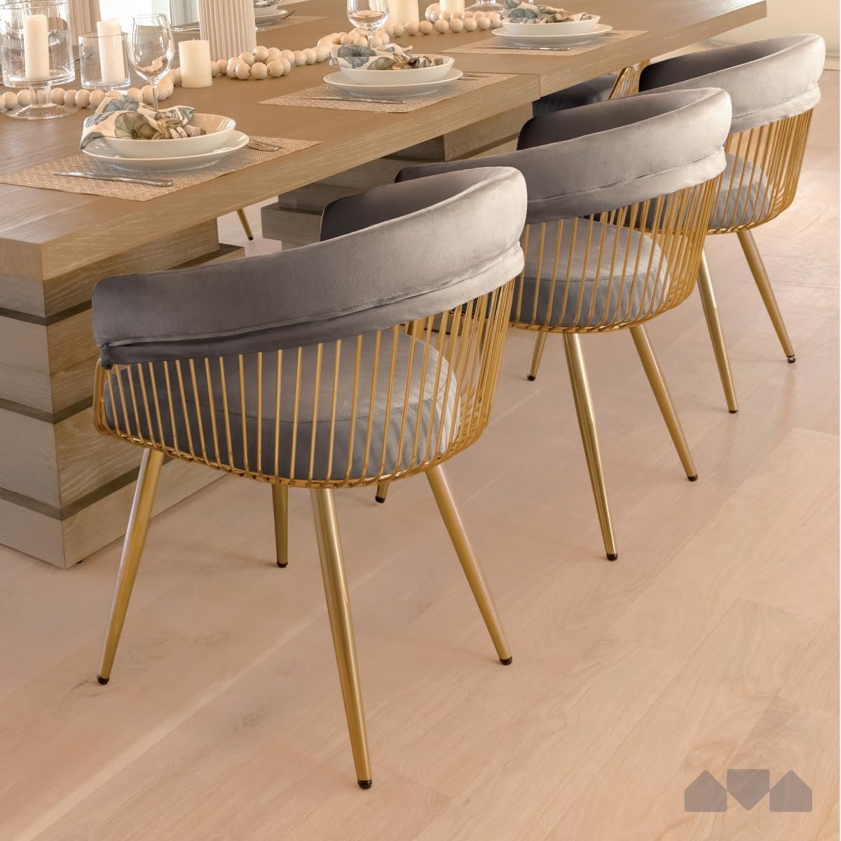 Elevate Your Décor: Introduce sophistication to your space with the Milliard Wire Dining Chair, a blend of contemporary charm and enduring comfort. Crafted with a sleek gold-finished metal frame, plush fabric upholstery, and a gracefully curved padded backrest, this chair is a statement piece.
