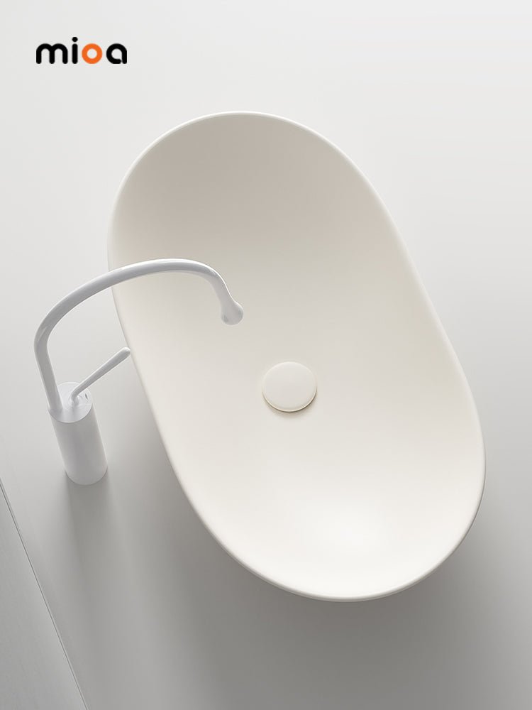 Évier ovale moderne en porcelaine avec robinet et drain