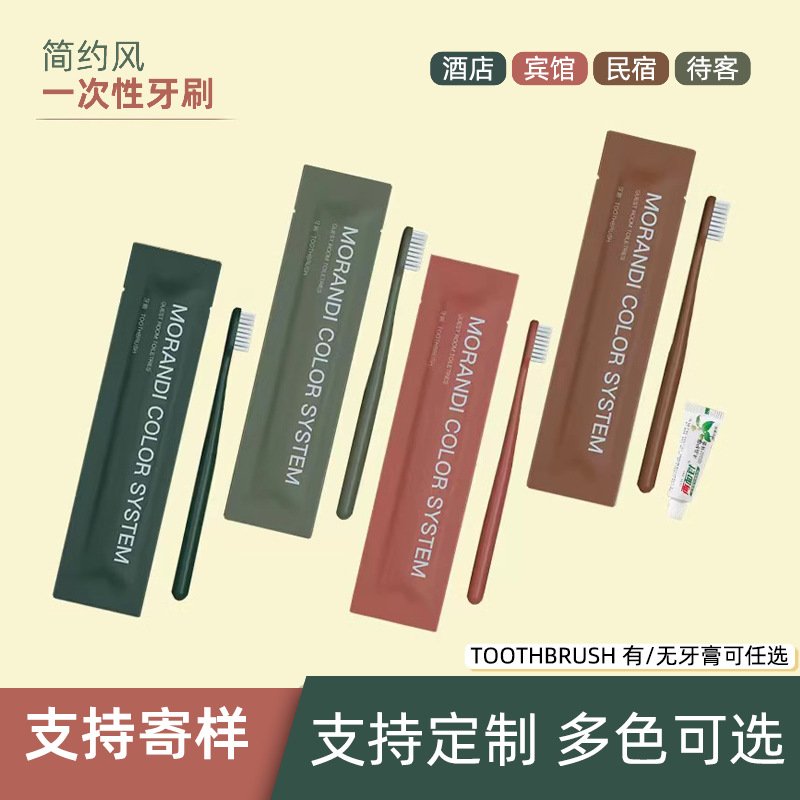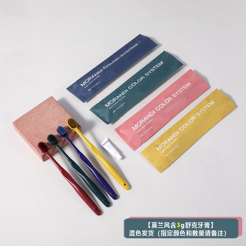 Brosse à dents jetable de la série Morandi avec dentifrice à poils doux, articles de toilette spéciaux pour la maison d'hôtes et les hôtels