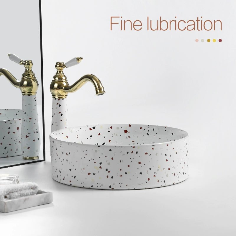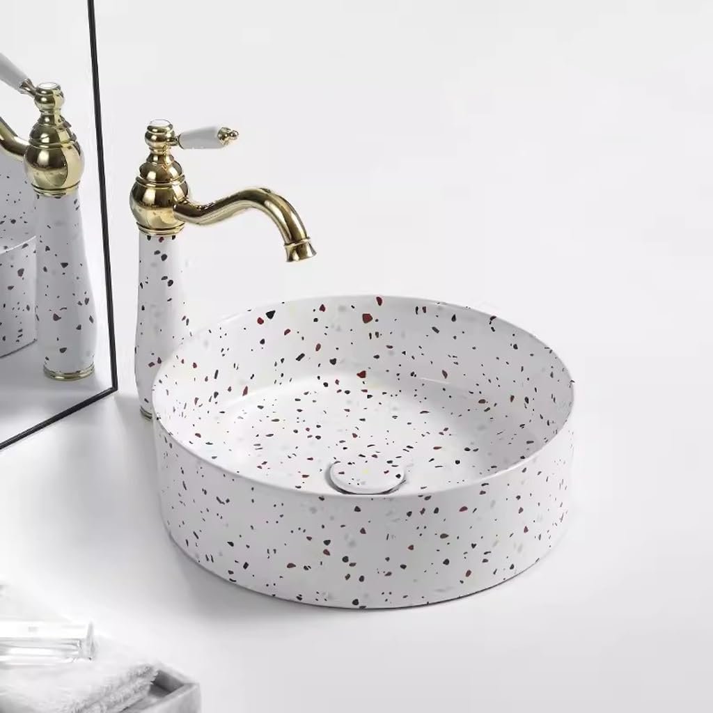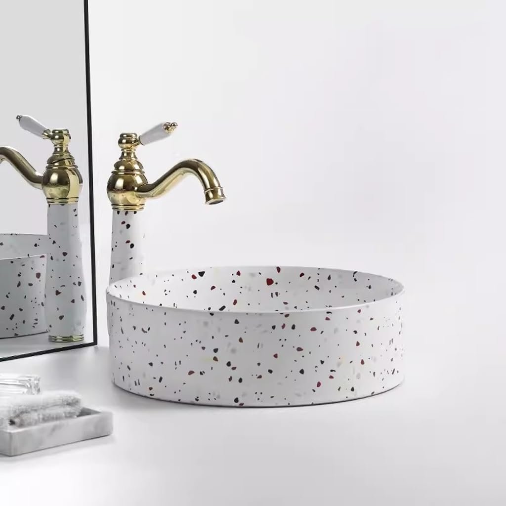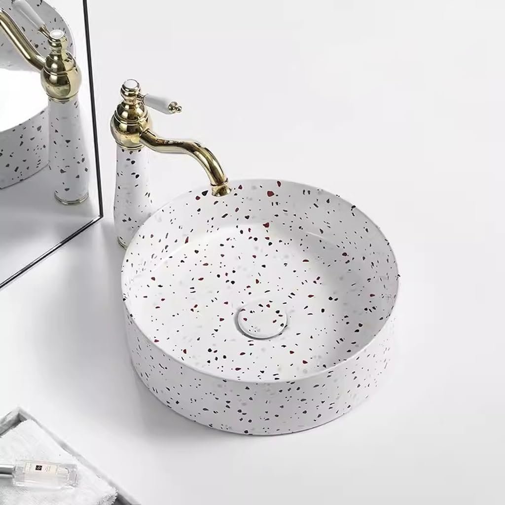 Infuse your space with modern elegance using the Nordic Terrazzo Round Ceramic Bathroom Vessel Sink. This stylish basin features a striking terrazzo finish that adds a touch of sophistication to any home or homestay bathroom. 🌟🏡