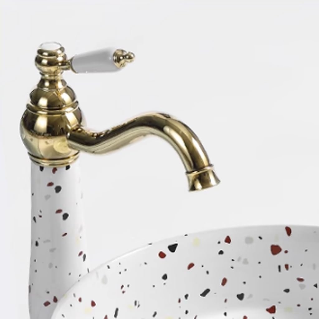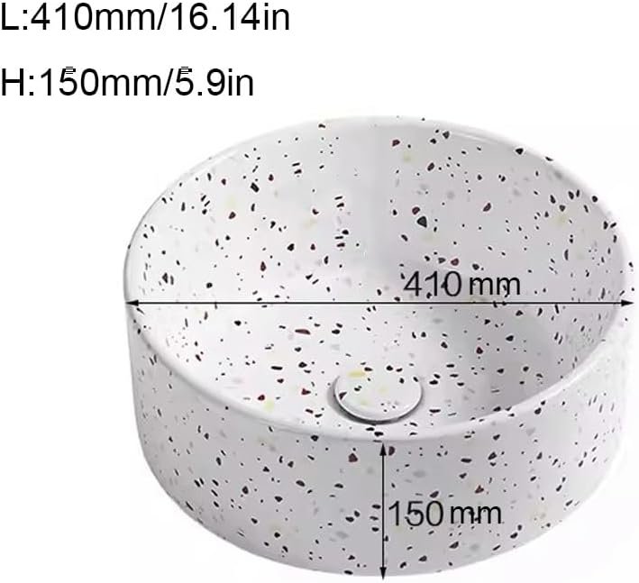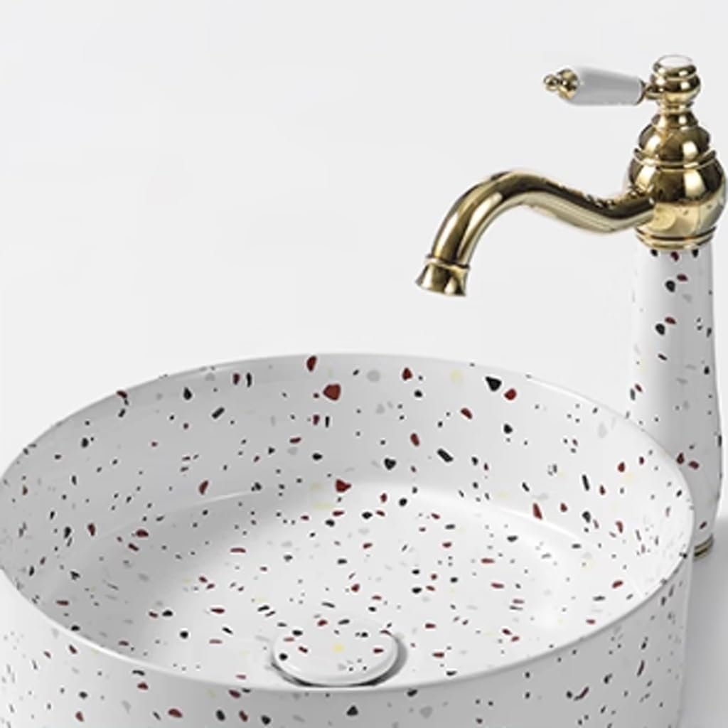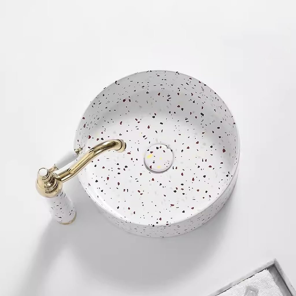 Designed in a sleek, round shape, this vessel sink seamlessly combines functionality with aesthetic appeal. Its high-quality ceramic construction ensures durability, while the unique terrazzo pattern brings a contemporary flair to your bathroom or balcony. 💧✨