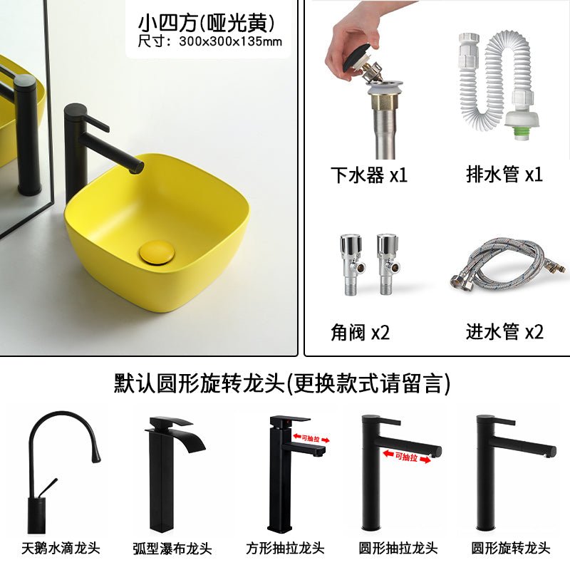 - trier par couleur:Dark green big ingot + round rotating faucet full set, dark green big ingot single basin with green drain, matte yellow big ingot + round rotating faucet full set, matte yellow big ingot single basin with yellow drain, matte black big ingot + round rotating faucet full set, matte black big ingot single basin with black drain, high-grade gray big ingot + round rotating faucet full set, high-grade gray big ingot single basin with black drain, dark green small square basin + round rotating faucet full set, dark green small square basin single basin with green drain, matte yellow small square basin + round rotating faucet full set, matte yellow small square basin single basin with yellow drain , Matte black small square basin + round rotating faucet full set, Matte black small square basin single basin with black drain, High-grade gray small square basin + round rotating faucet full set, High-grade gray small square basin single basin with black drain, Dark green small ingot + round rotating faucet full set, Dark green small ingot single basin with green drain, Matte yellow small ingot + round rotating faucet full set, Matte yellow small ingot single basin with yellow drain, Matte black small ingot + round rotating faucet full set, Matte black small ingot single basin with black drain, High-grade gray small ingot + round rotating faucet full set, High-grade gray small ingot single basin with black drain