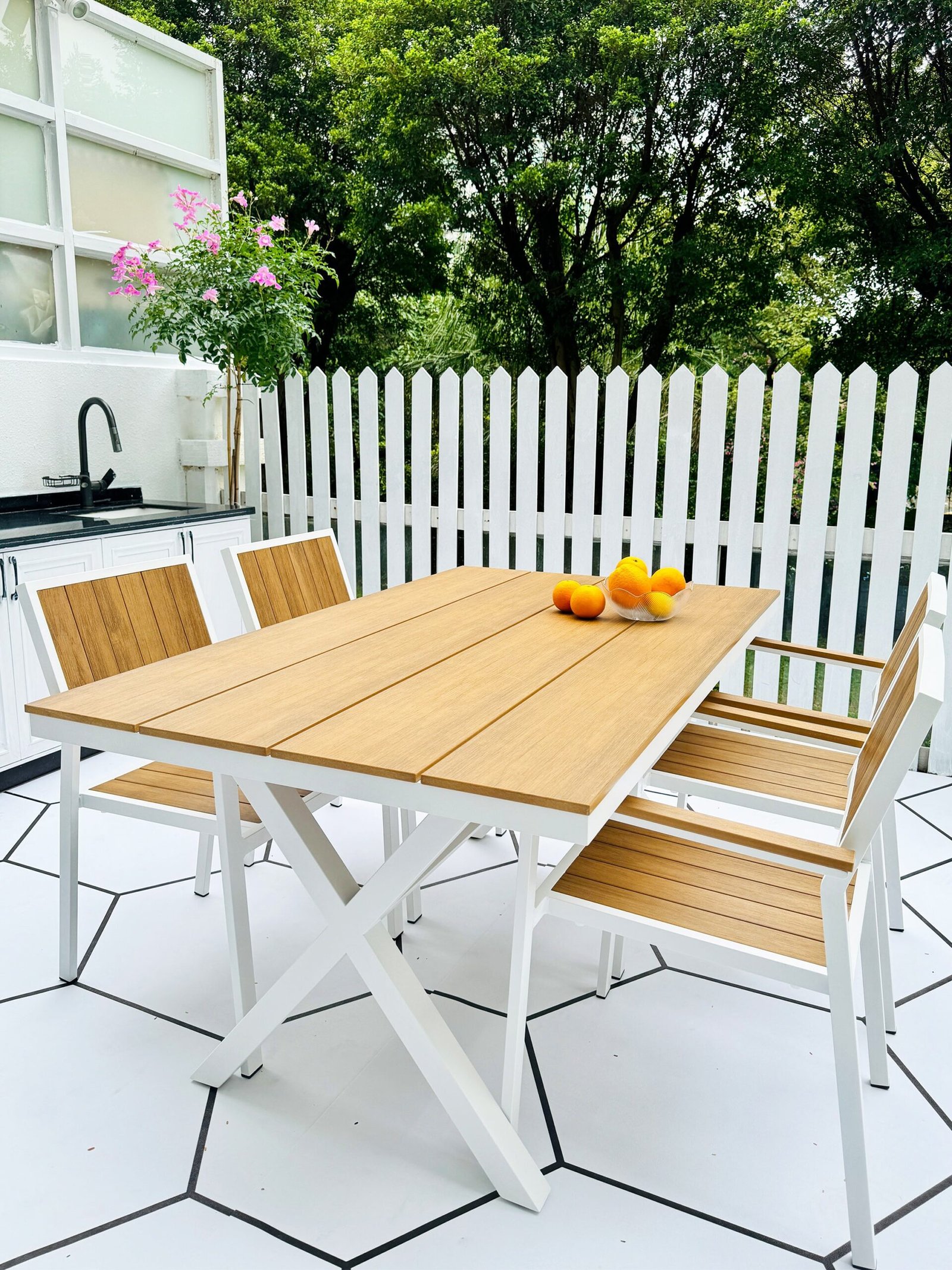 Stylish Waterproof Plastic Wood Outdoor Table & Chairs