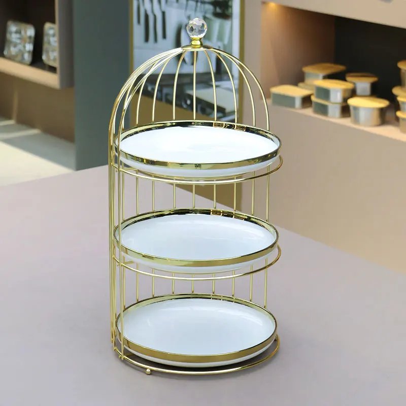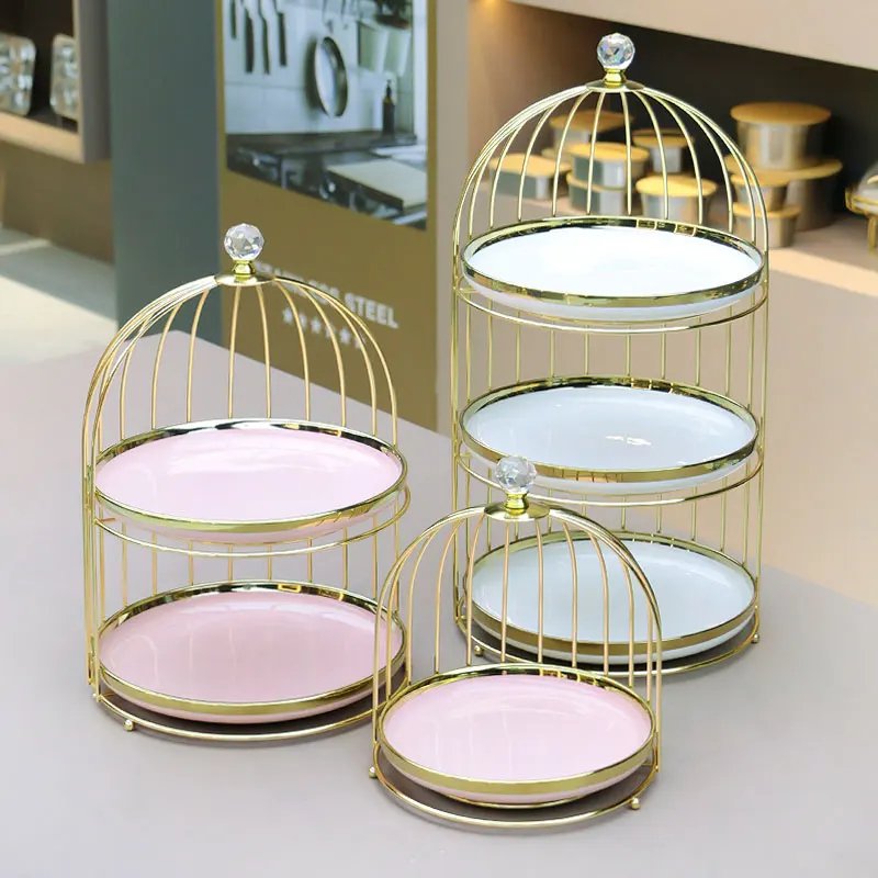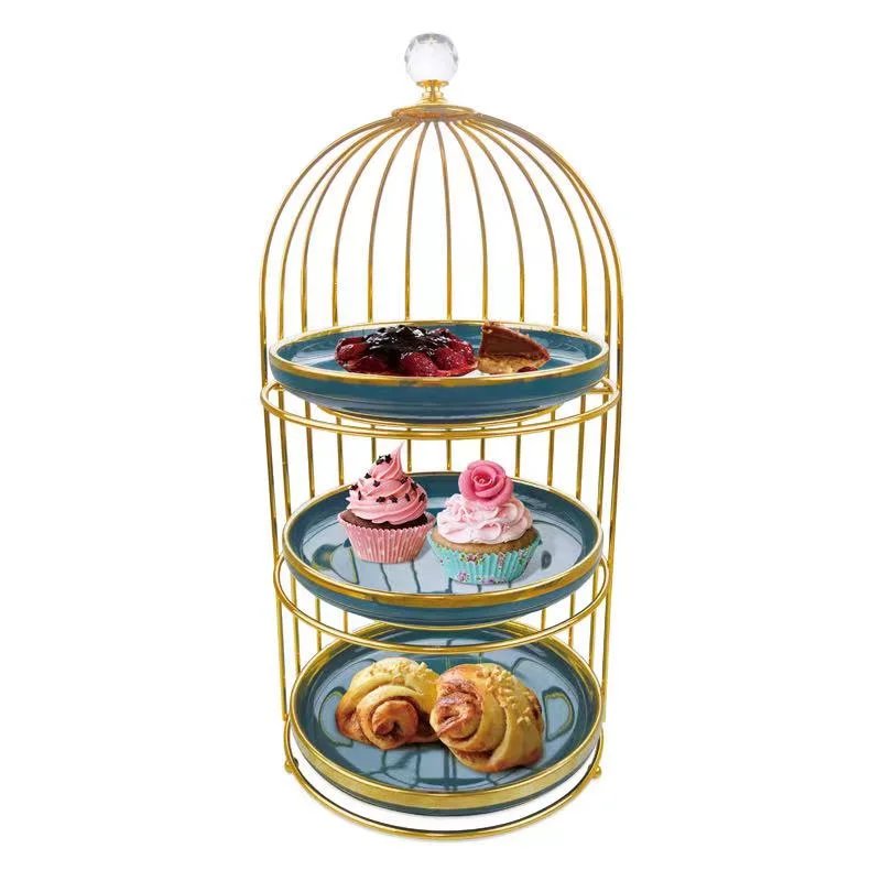 19 avis pour Baking Tools Supplies Cake Table Decorating 2-tier Dessert Marble Stand Snack Metal Bird Cage Rack Marble Cake Stand