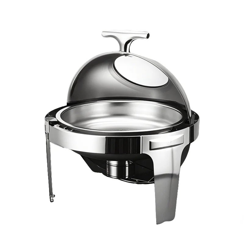 Réchaud à réchaud haut de gamme 6 L en acier inoxydable 201 304 avec couvercle à enroulement – Chauffe-plats pour buffets commerciaux pour hôtels et événements