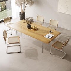 Table à manger en bois massif couleur crème – Design élégant et durable