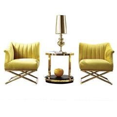24 avis pour Luxury Yellow Fabric Corner Sofa Chair – Stainless Steel