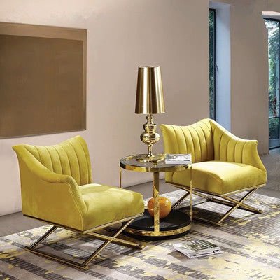 Luxury Yellow Fabric Corner Sofa Chair – Stainless Steel