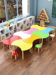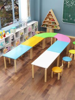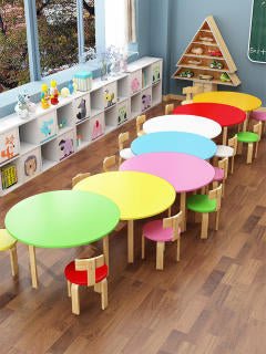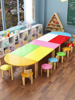 Solid Wood Kindergarten Art Desk & Chair Set