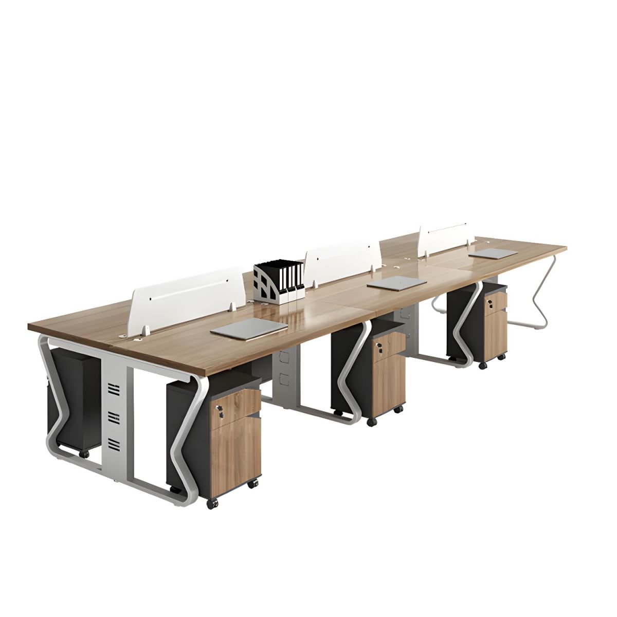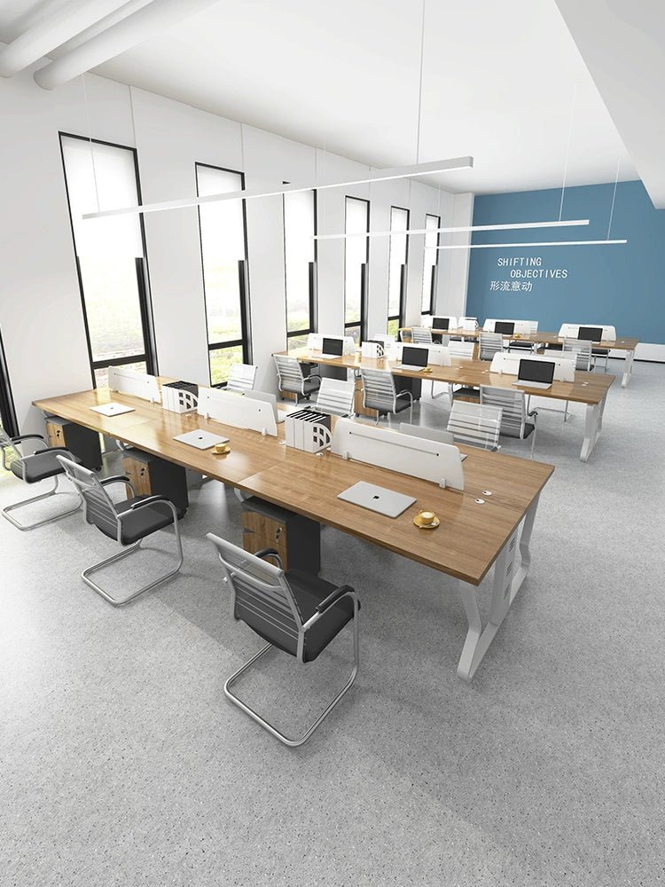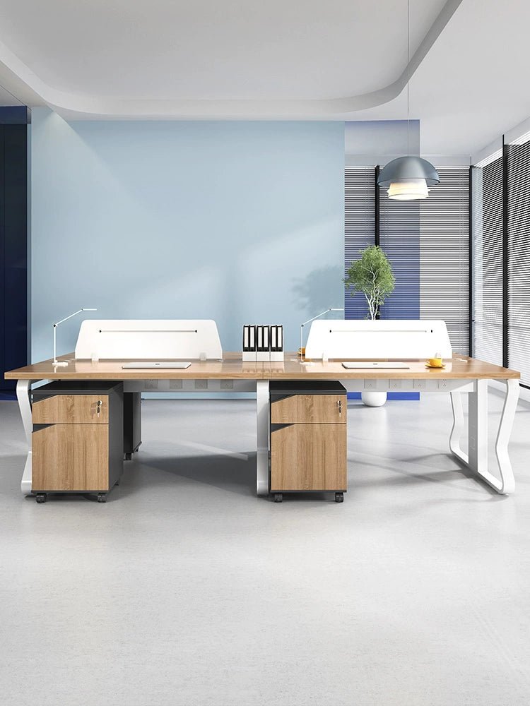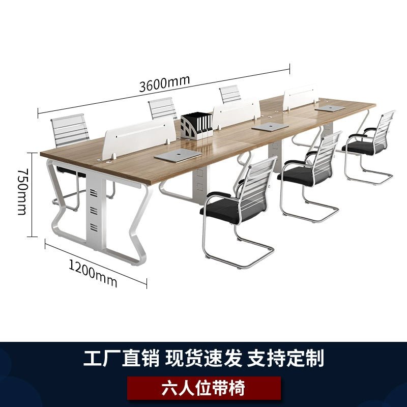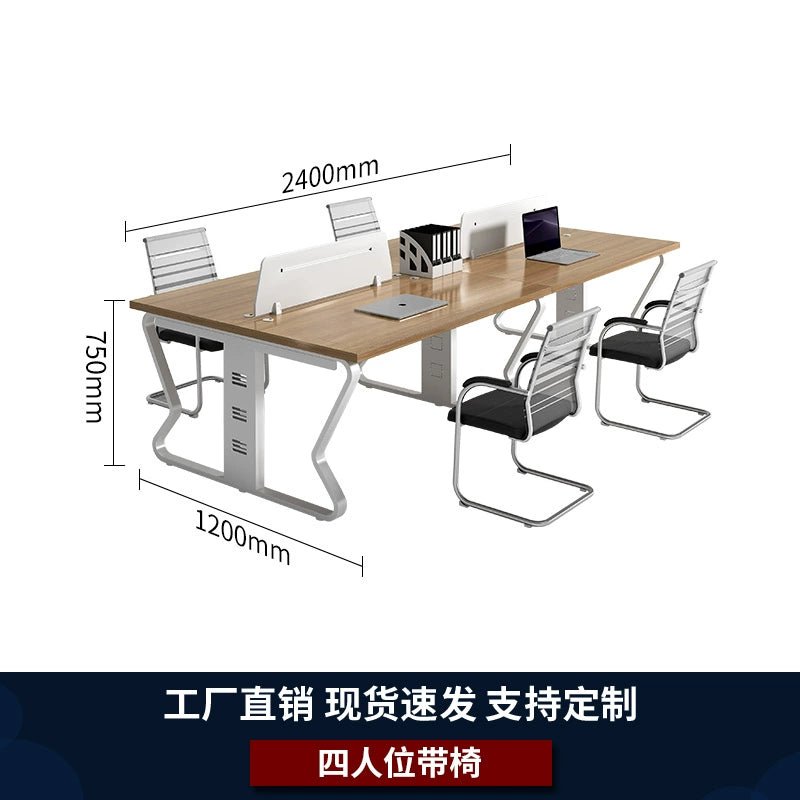 Enhance your office environment with our Staff Desk and Chair Combination. Designed for modern workspaces, this four-person double-seat workstation offers the perfect blend of comfort, functionality, and style.
