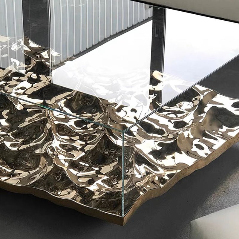 Table basse minimaliste en fibre de verre à motif ondulé