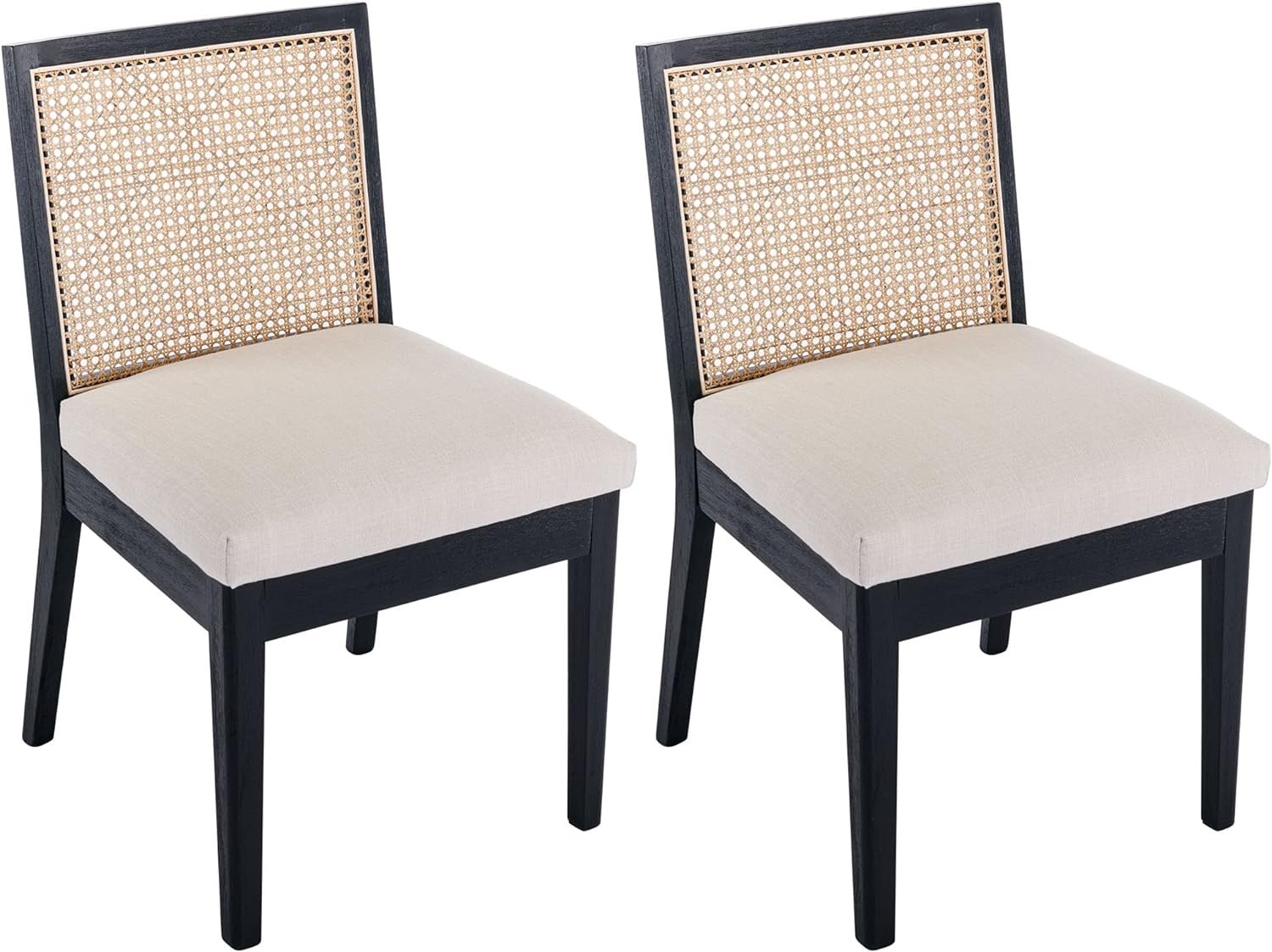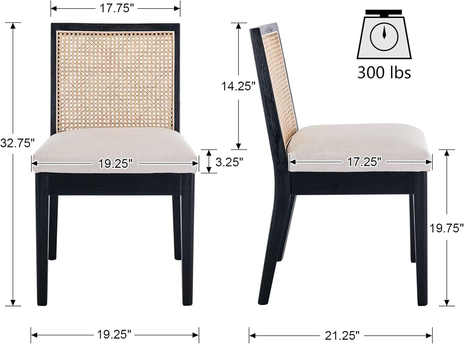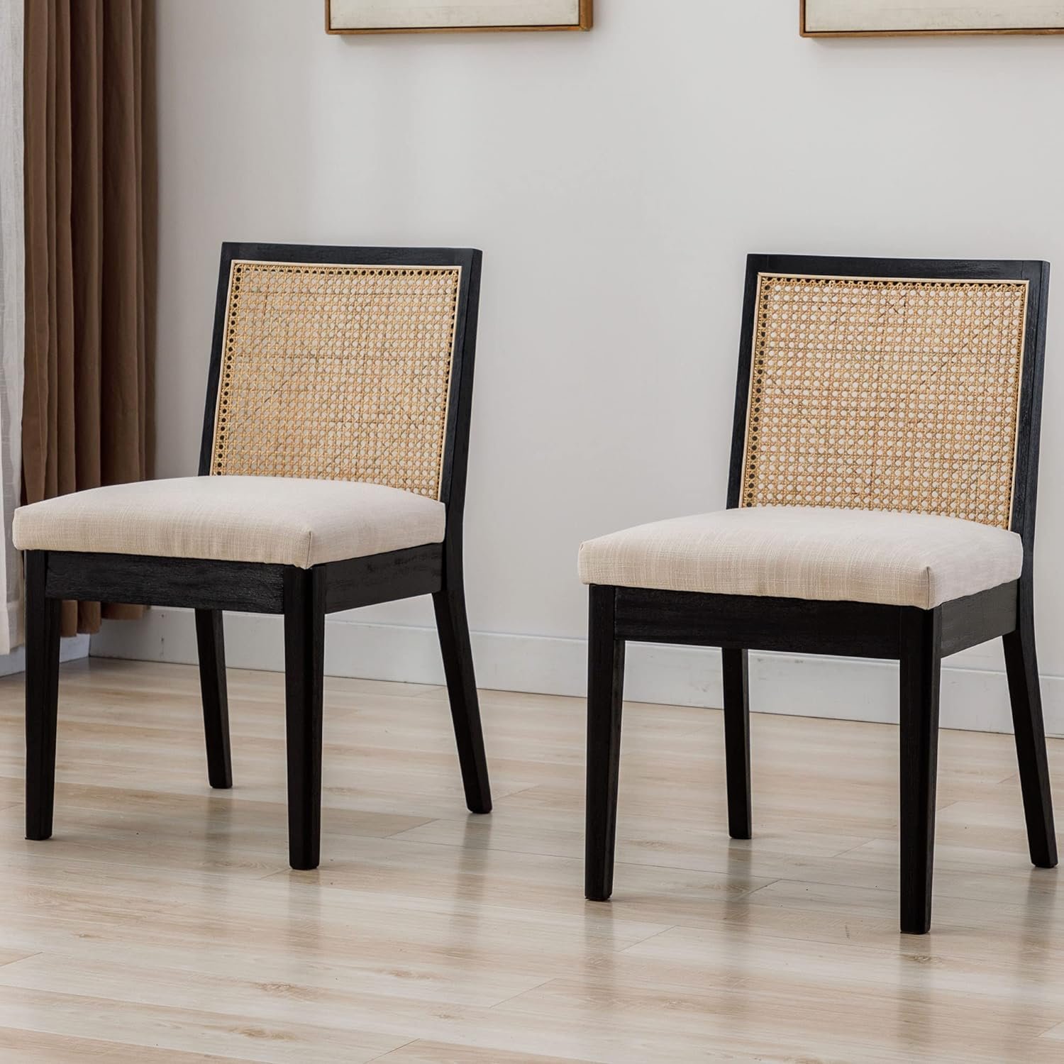 🎨 Sophisticated Styling: Featuring a sleek square rattan backrest and sleek black wood legs, these chairs effortlessly blend style with functionality.