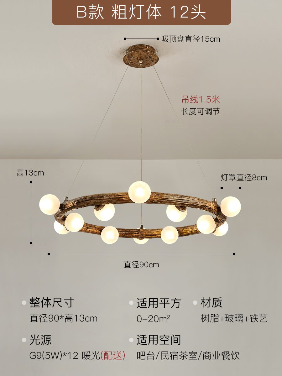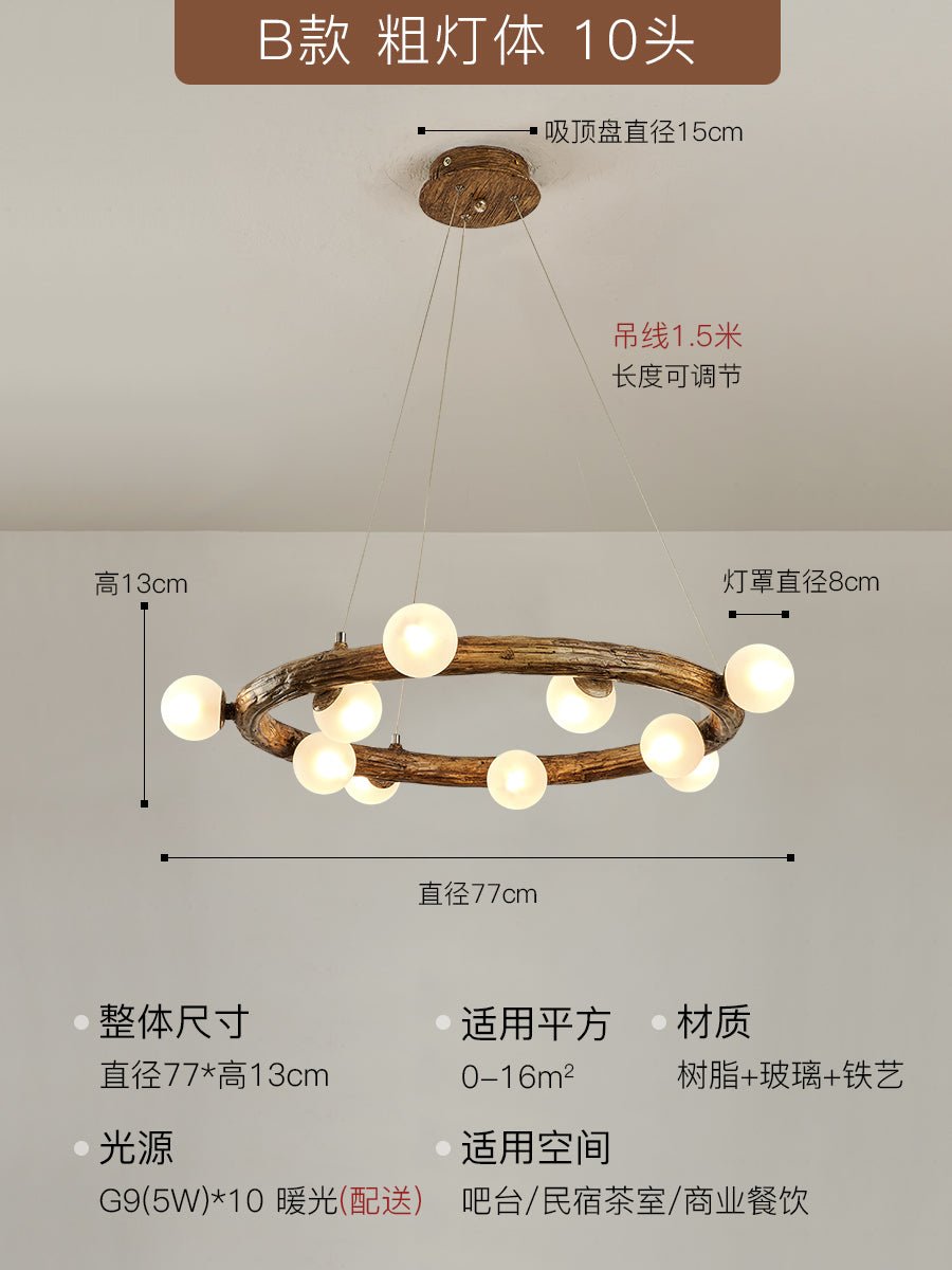 Traditional Vintage Resin Tree Branch Circle Ring: Timeless Elegance in Lighting